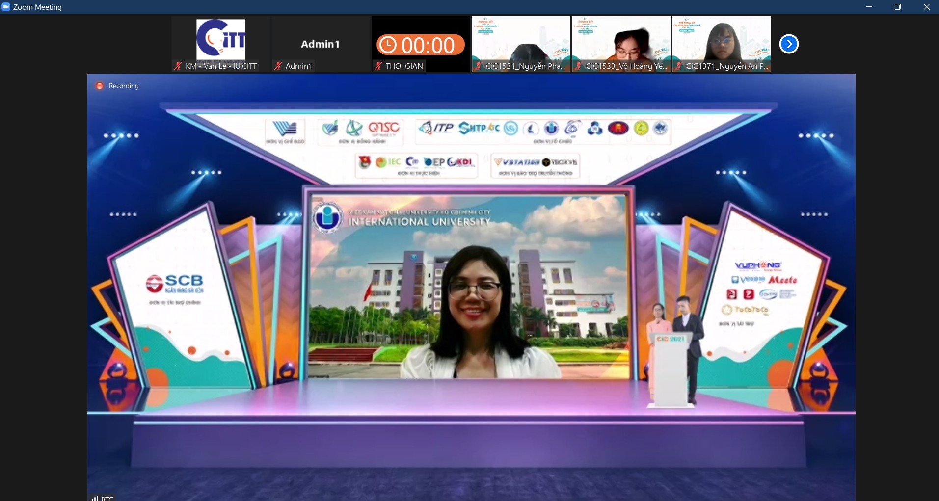 - Trần Thị Ngọc Diệp – Trưởng TT Đổi mới sáng tạo và Chuyển giao công nghệ đã đại diện trường ĐH Quốc tế – tham gia buổi lễ bế mạc và trao giải. TS Diệp ủng hộ tinh thần cho các dự án tham gia cuộc thi. Trường ĐH Quốc tế là đơn vị đồng hành tổ chức cuộc thi trong 2 năm qua, hỗ trợ công tác tổ chức và nền tảng tổ chức trực tuyến các vòng thi.