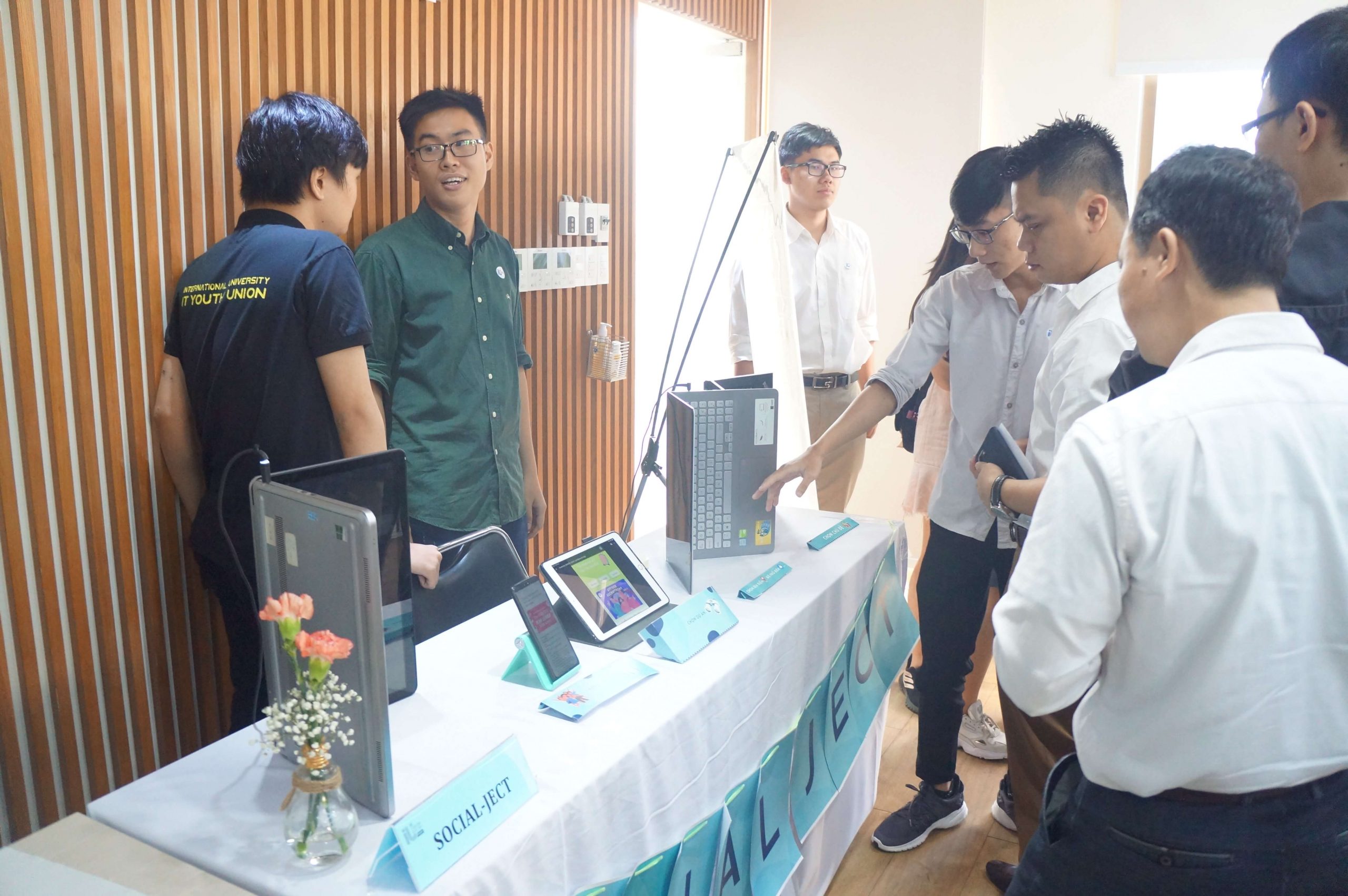 Ban giám khảo, khách tham dự chương trình xem các sản phẩm demo và lắng nghe chia sẻ của các đội dự thi