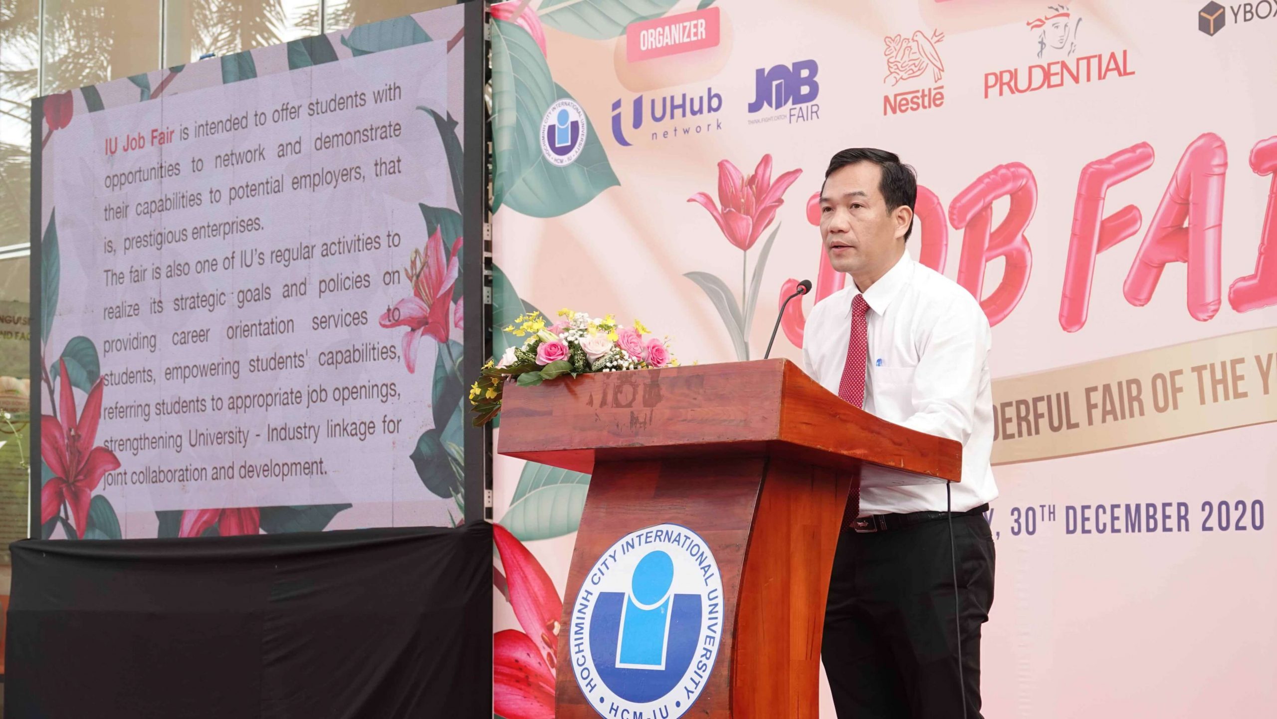PGS.TS Lê Văn Cảnh – Phó Hiệu trưởng trường ĐHQT – phát biểu khai mạc Ngày Hội Việc Làm – IU Job Fair 2020.
