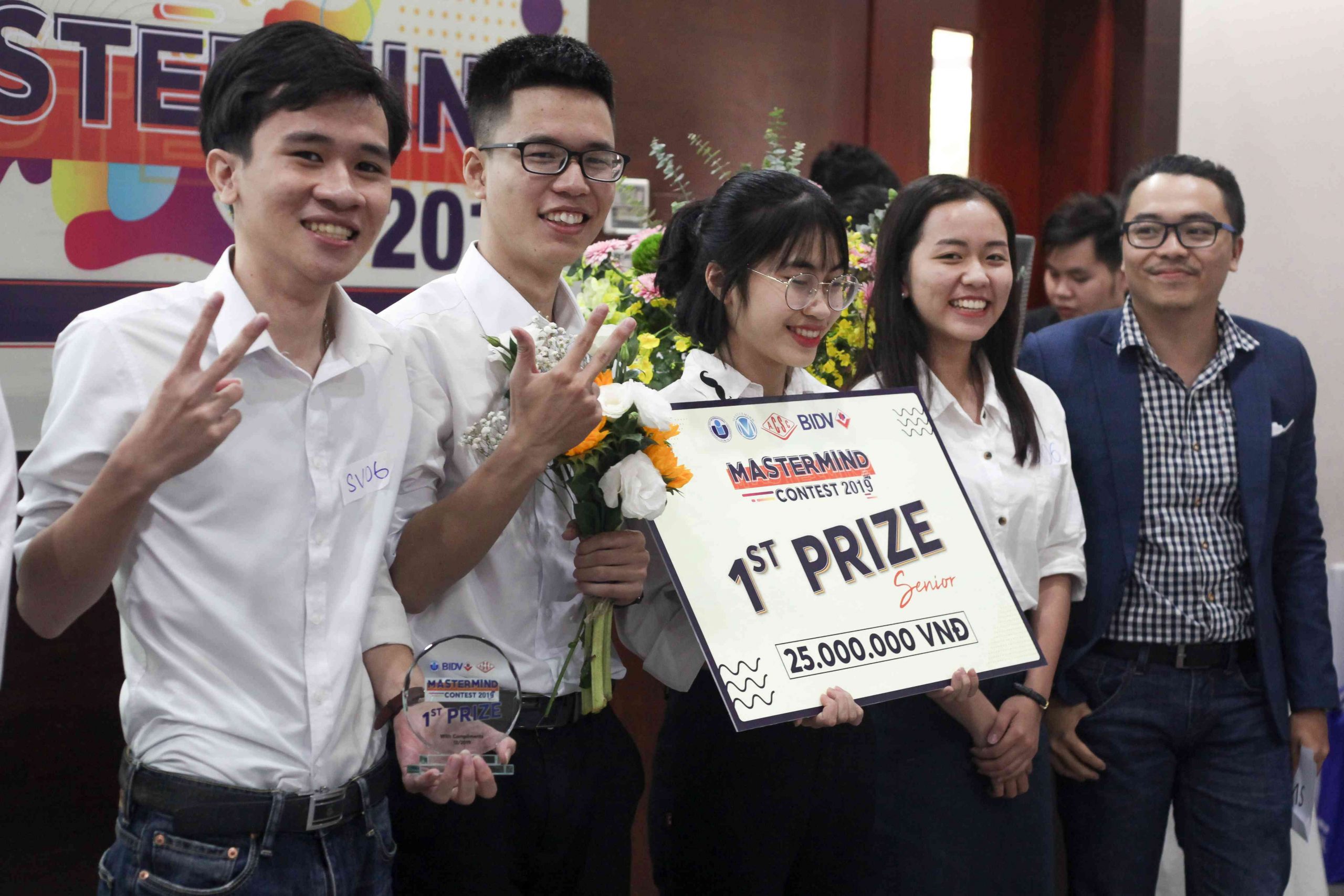 Thành viên đội SV06 mừng vui nhận giải nhất cuộc thi Mastermind 2019