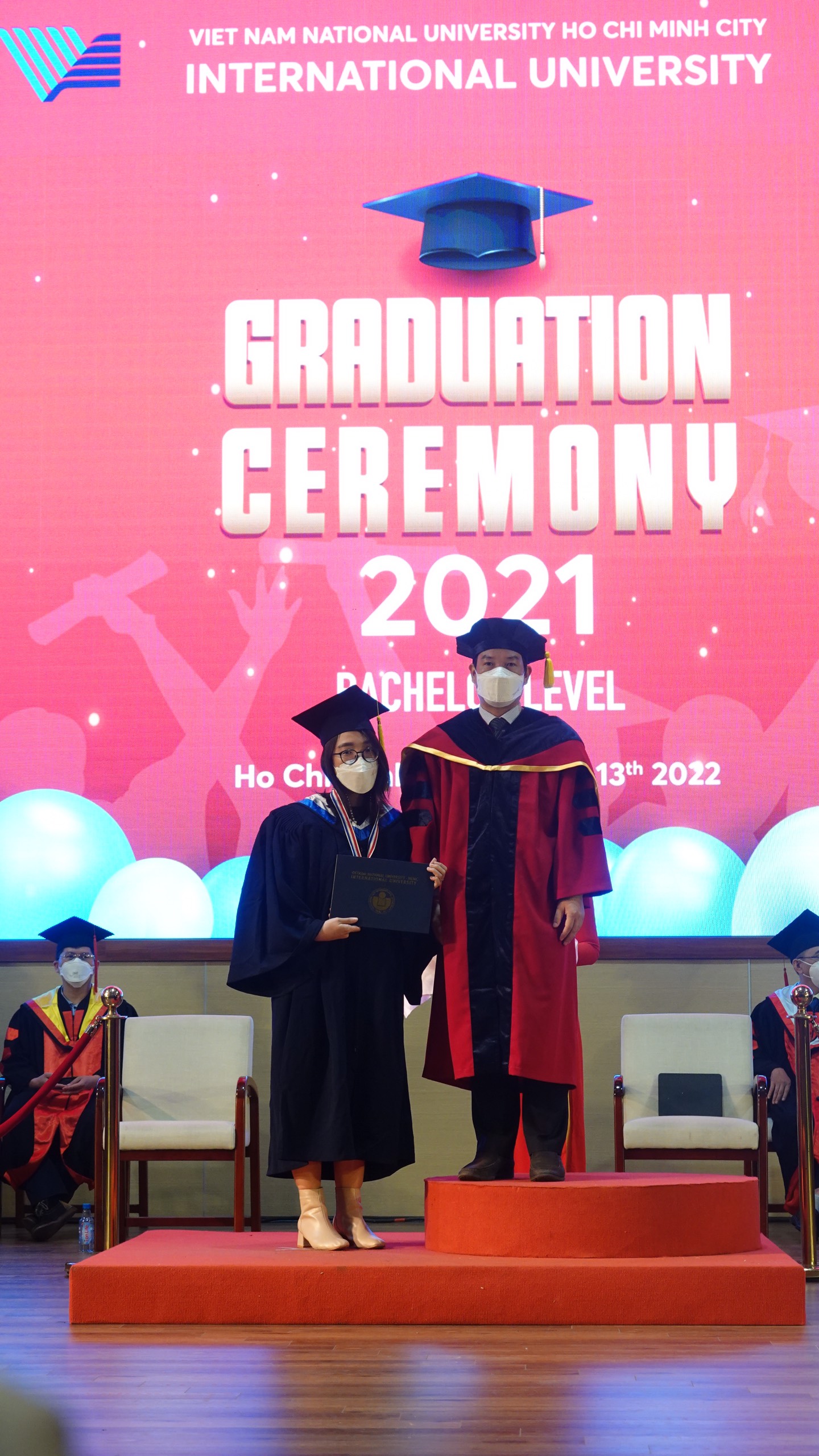 PGS.TS. Đinh Đức Anh Vũ – Phó Hiệu trưởng trường ĐHQT – trao bằng Link Vào Trang Chủ HM88.COM và huy chương vàng cho Thủ khoa Tốt nghiệp năm 2021 của nhà trường Tân Kỹ sư Võ Đình Doãn