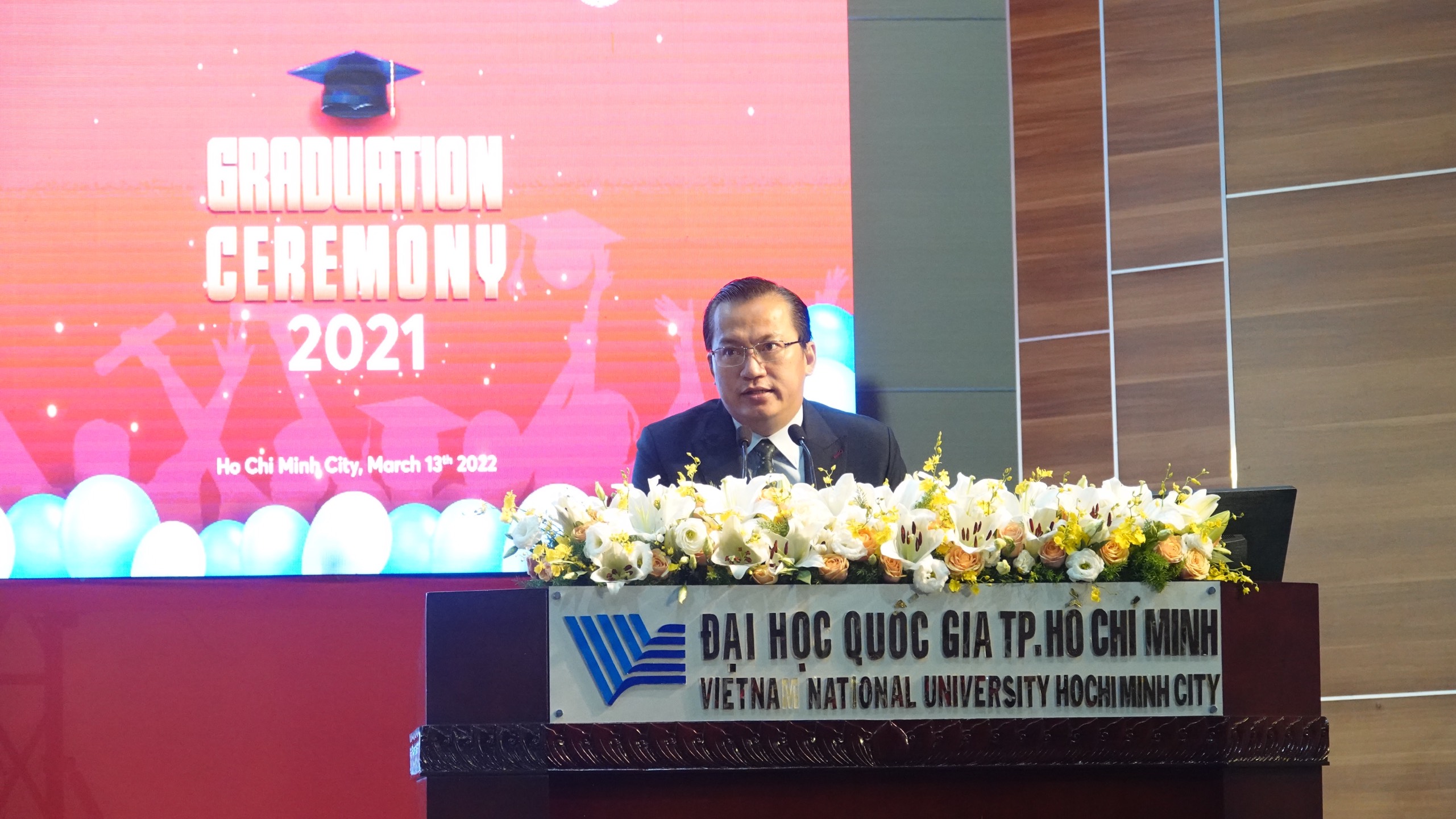 PGS.TS. Trần Tiến Khoa – Hiệu trưởng trường ĐHQT – chúc mừng các Tân Tiến sĩ, Hm88 nhacai bảo mật an toàn, Kỹ sư và Cử nhân Link Vào Trang Chủ HM88.COM năm 2021 của nhà trường.