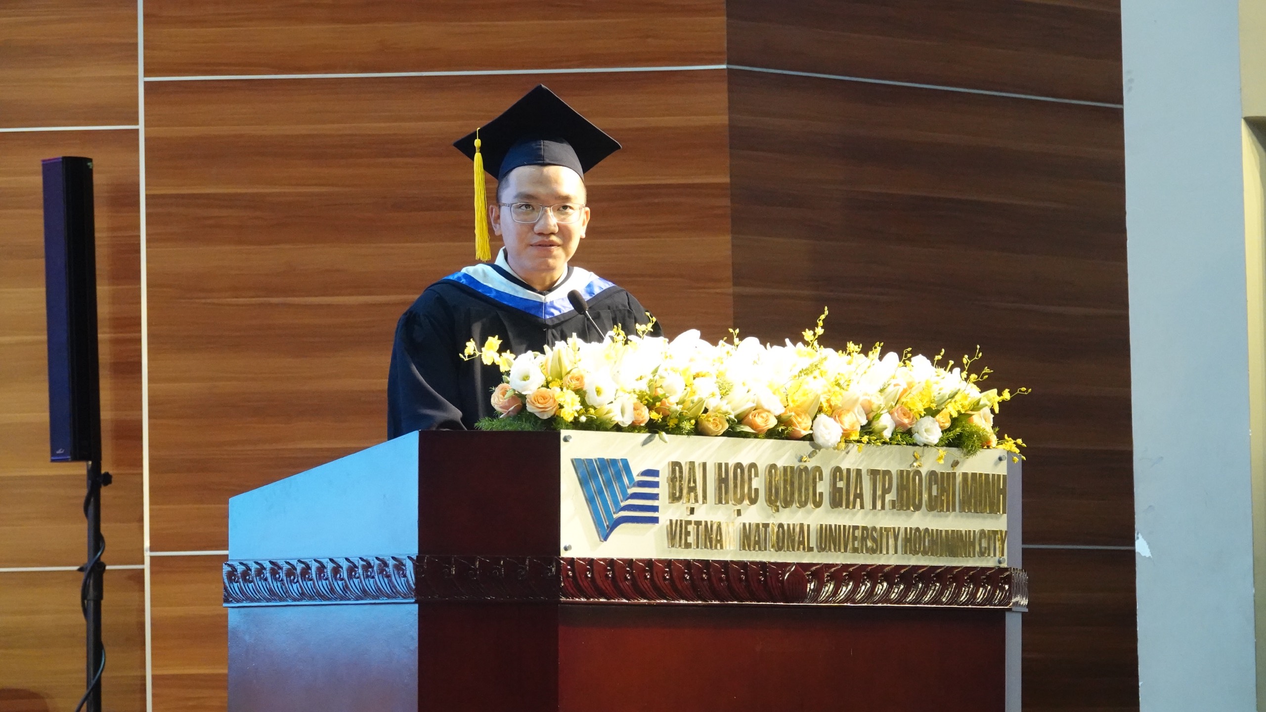 Tân Kỹ sư Võ Đình Doãn – Thủ Khoa Tốt nghiệp năm 2021 – chia sẻ cảm nghĩ trong không khí ấm áp của buổi lễ sáng 12/3/2022