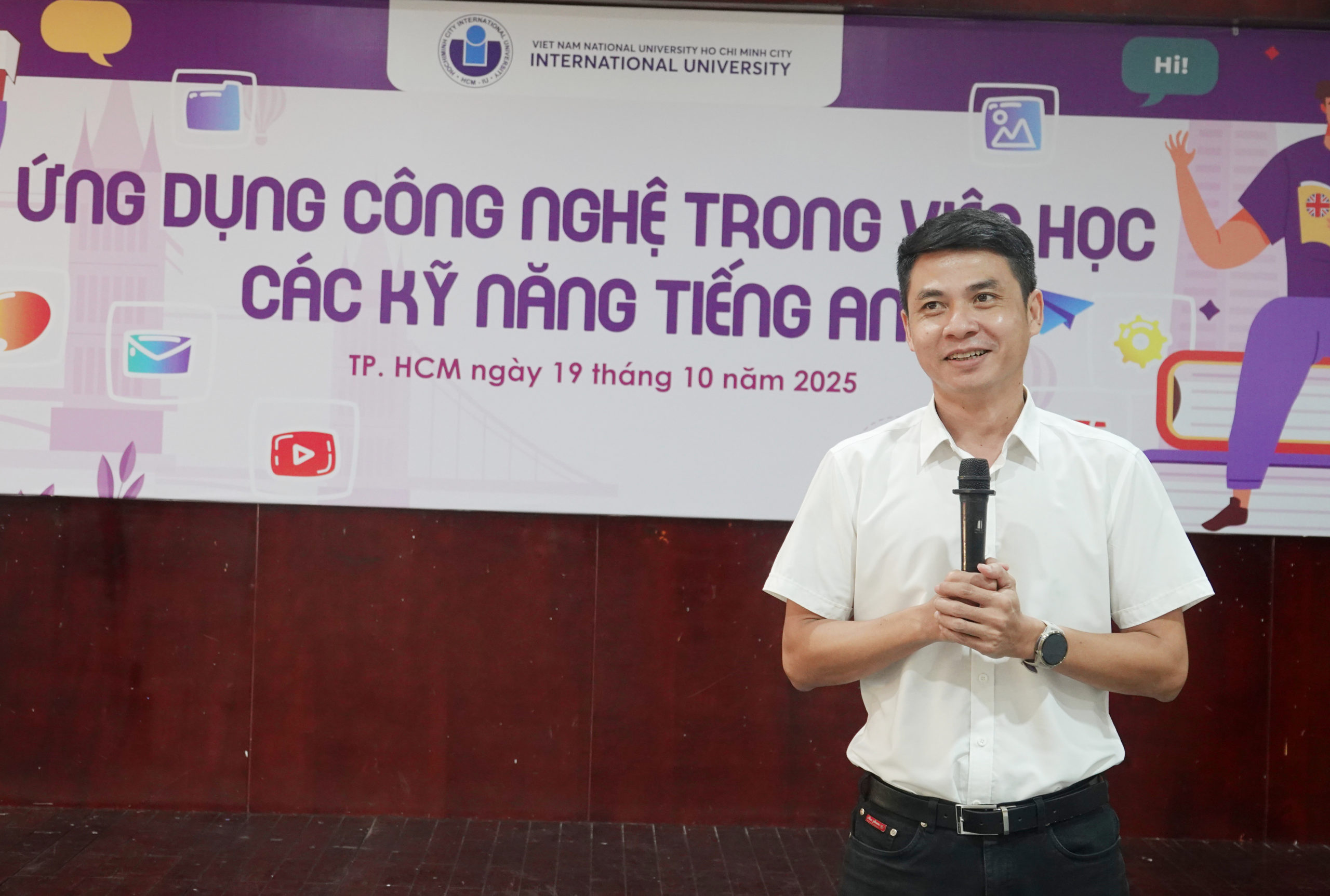 Sáng 19/10/2025, trường Hm88 nhacai cá cược thể thao Quốc tế (ĐHQT) – Hm88 nhacai cá cược thể thao Quốc gia Thành phố Hồ Chí Minh tổ chức chương trình bài giảng đại chúng tháng 10 với chuyên đề “Ứng dụng công nghệ trong việc học các kỹ năng tiếng Anh” với phần trình bày hấp dẫn từ ThS. Đỗ Hoàng Nga – Giảng viên Nhà Cái HM88.COM | Slot Game, Casino Live.
