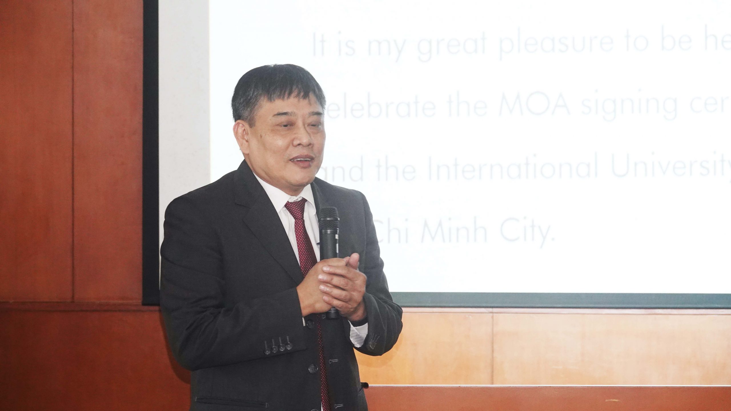 TS. Trần Tiến Khoa – Hiệu trưởng trường ĐHQT – phát biểu tại buôỉ Lễ Ký kết với Bệnh viện FV