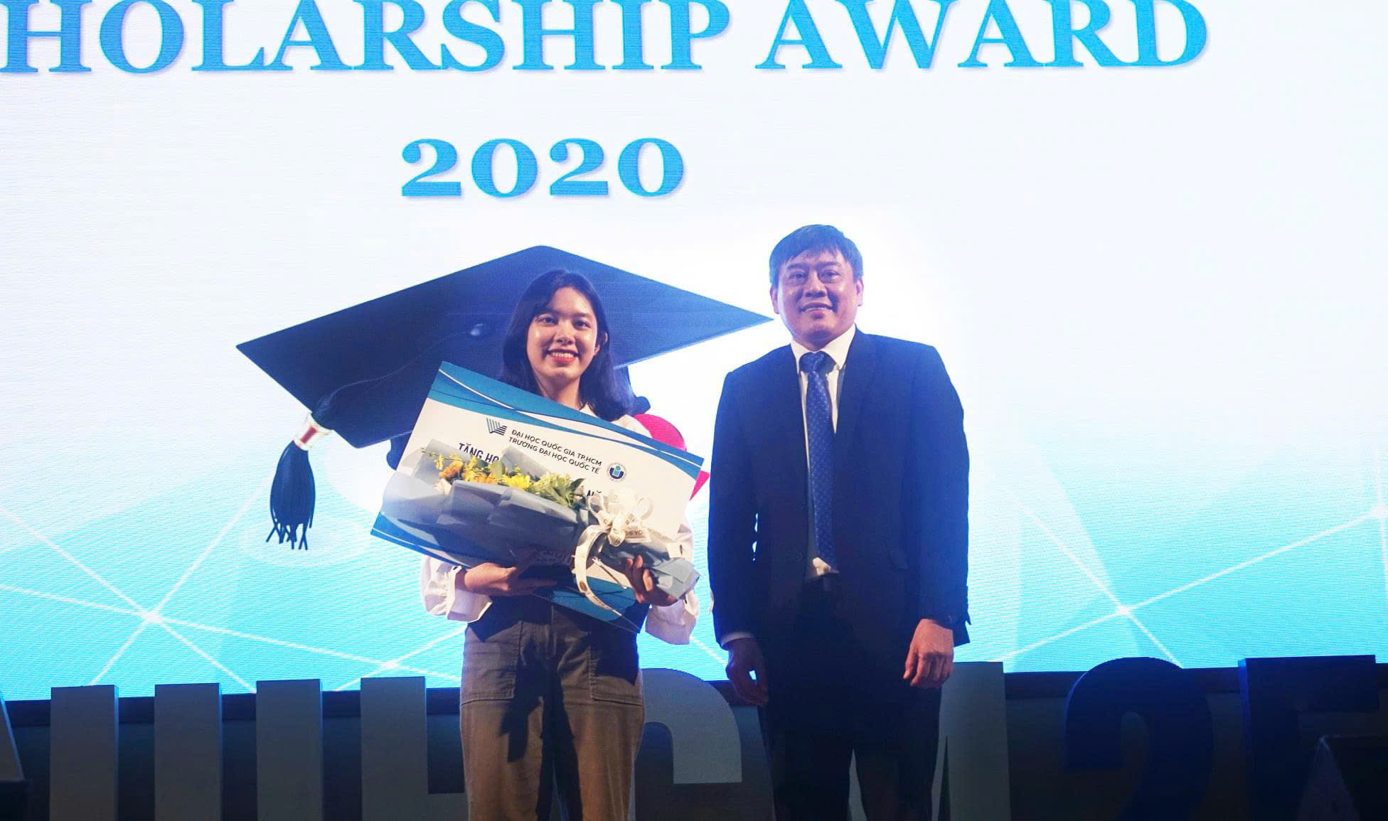 Huỳnh Thị Mỹ Anh nhận Hm88vip giải trí của bet thủ thủ khoa tuyển sinh năm 2020 từ PGS.TS. Trần Tiến Khoa – Nguyên Hiệu trưởng trường ĐHQT.
