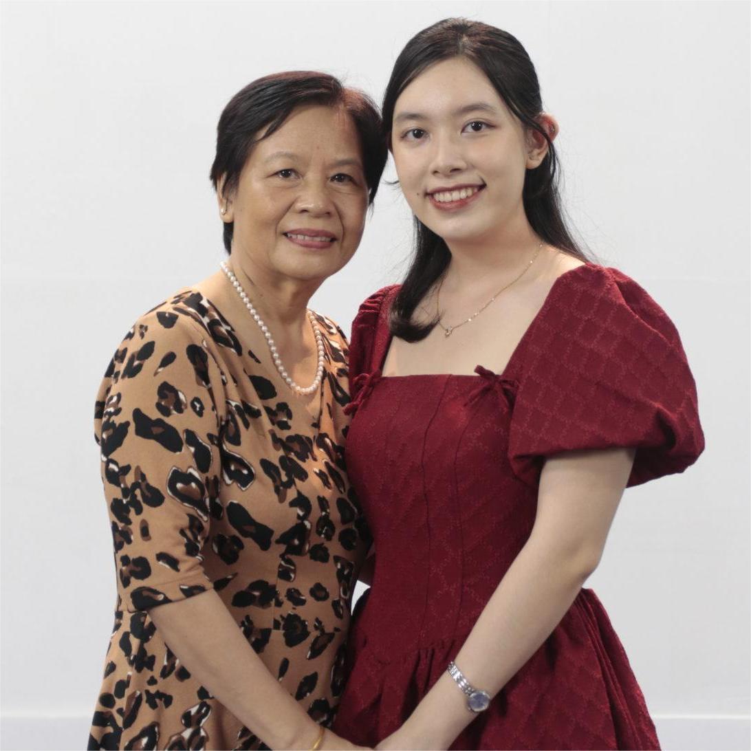 Mỹ Anh và mẹ của mình khi biết tin mình là Thủ khoa kép của trường ĐH Quốc tế.