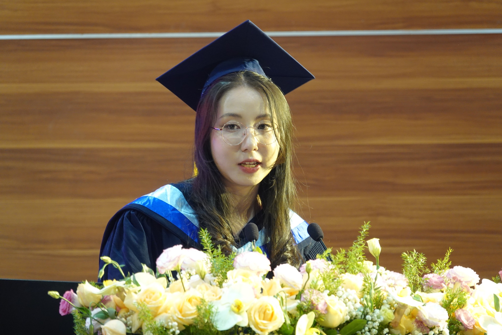 New Master’s graduate Chung Minh Nhật expressed his gratitude to the International University, his parents, friends, and all those who have supported him throughout his journey. As the Young Talent of Ho Chi Minh City in 2020, he also shared a message with his fellow graduates: “As we leave IU and begin new journeys, I hope that each of us can bring a belief in a noble purpose in life, cooperation, leadership for future generations, and a kind heart. I hope that we can apply these values not only in our work but also in the way we connect with and contribute to the world around us.”