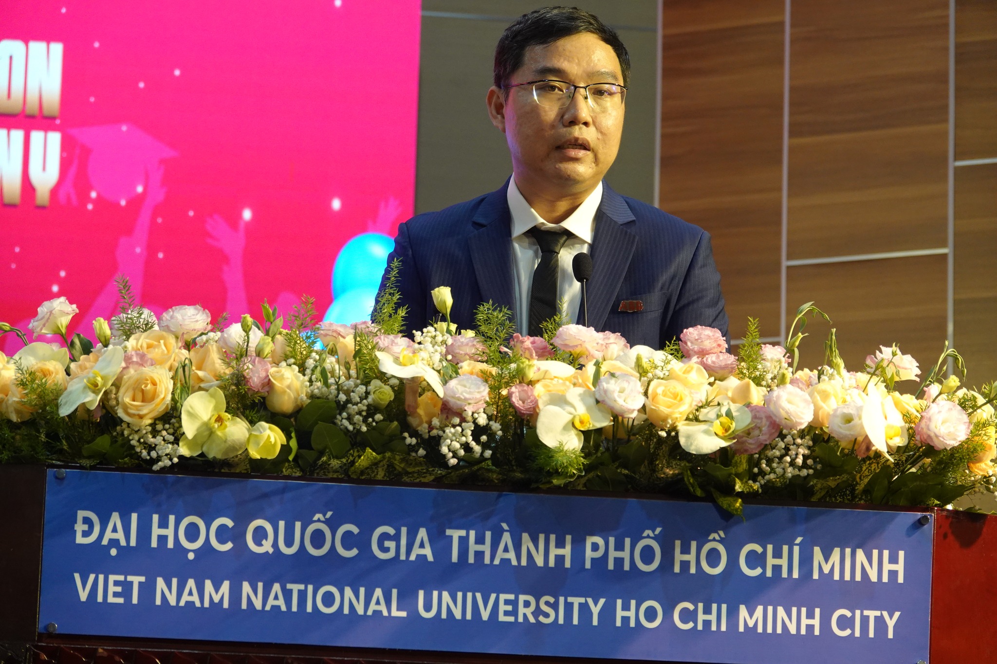 In his opening speech, Assoc. Prof. Dr. Le Van Thang – President of the International University – extended his warmest congratulation to the university’s new Ph.D. graduates, Master’s graduates, Baccalaureus, and Bachelor’s graduates. He emphasized that the Class of 2024 holds a special place for the university’s academic staff, being a cohort that faced a global challenge – the COVID-19 pandemic – right at the start of their university journey.