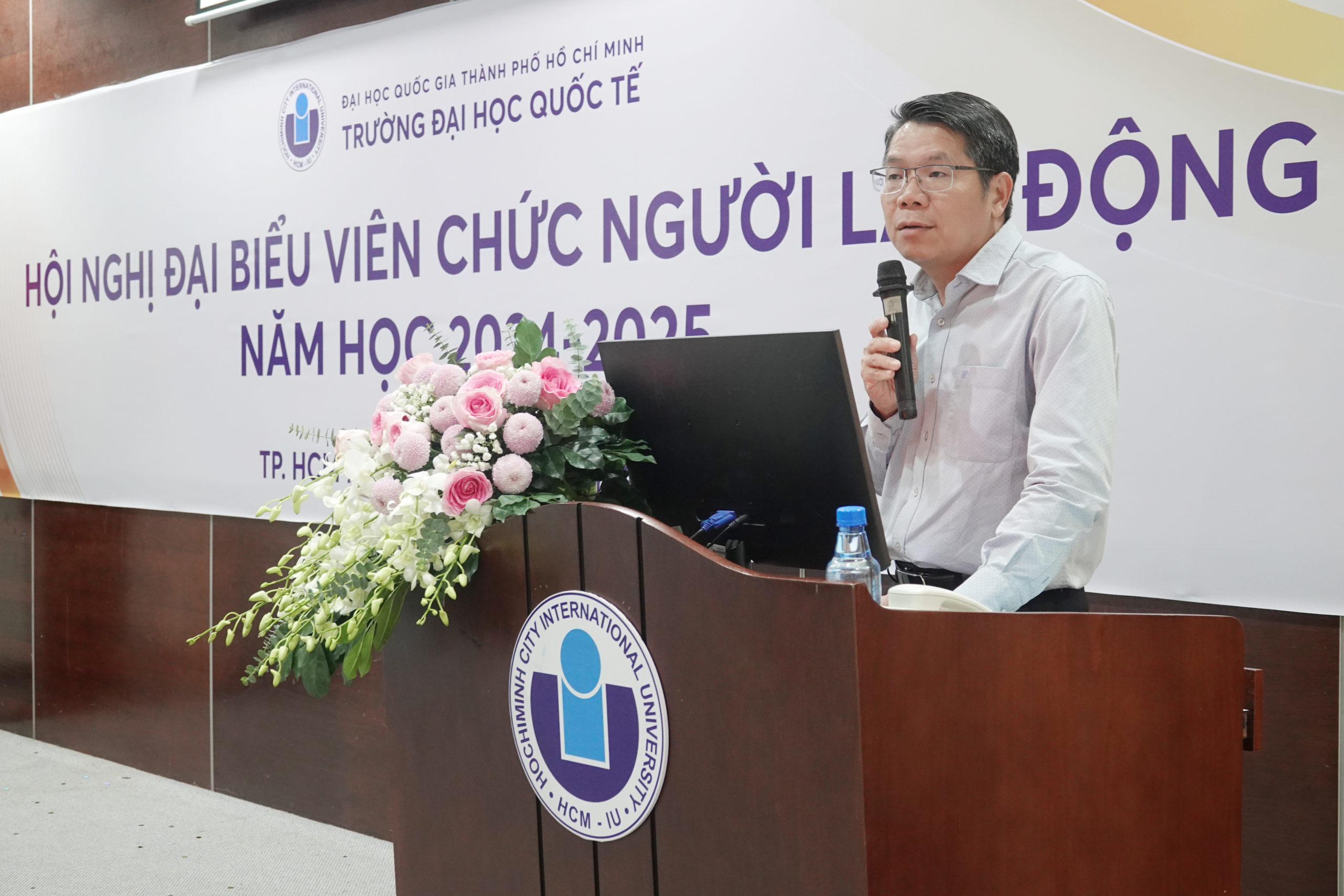 In the opening speech, Assoc. Prof. Dr. Le Van Thang, Deputy Secretary of Party Committee and President of IU – stated: “The Employee Conference is an annual event for us to discuss the work and achievements of the past year. It is also an opportunity for IU to listen to feedback from esteemed faculty members, aiming to improve IU operations in the upcoming phase”. Additionally, Assoc. Prof. Dr. Le Van Thang affirmed that the Conference approved the direction and some appropriate system of indicators related to IU activities for the 2024-2025 academic year.