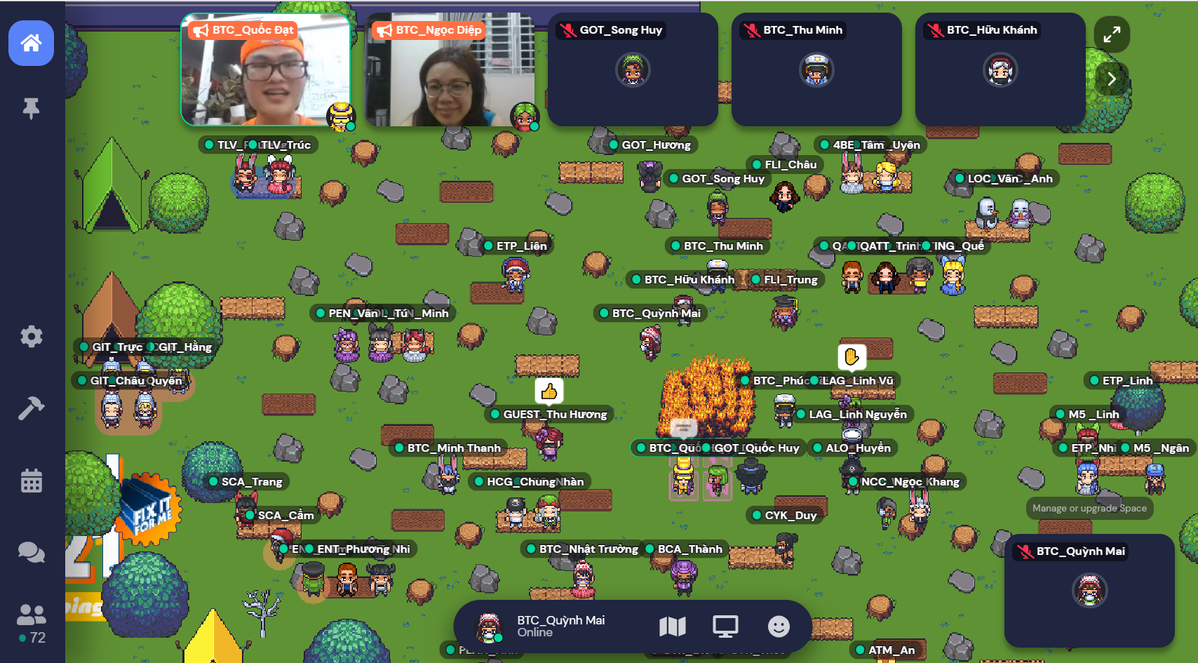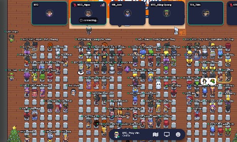 During the night on the same day, the “Enter Camp” activity took place in a lively and creative online form on the Gather.town platform. Here, campers had their first meeting to get the program information, instructions on how to use online tools, and more importantly, the experience as well as to get acquainted with the Gather.town platform.