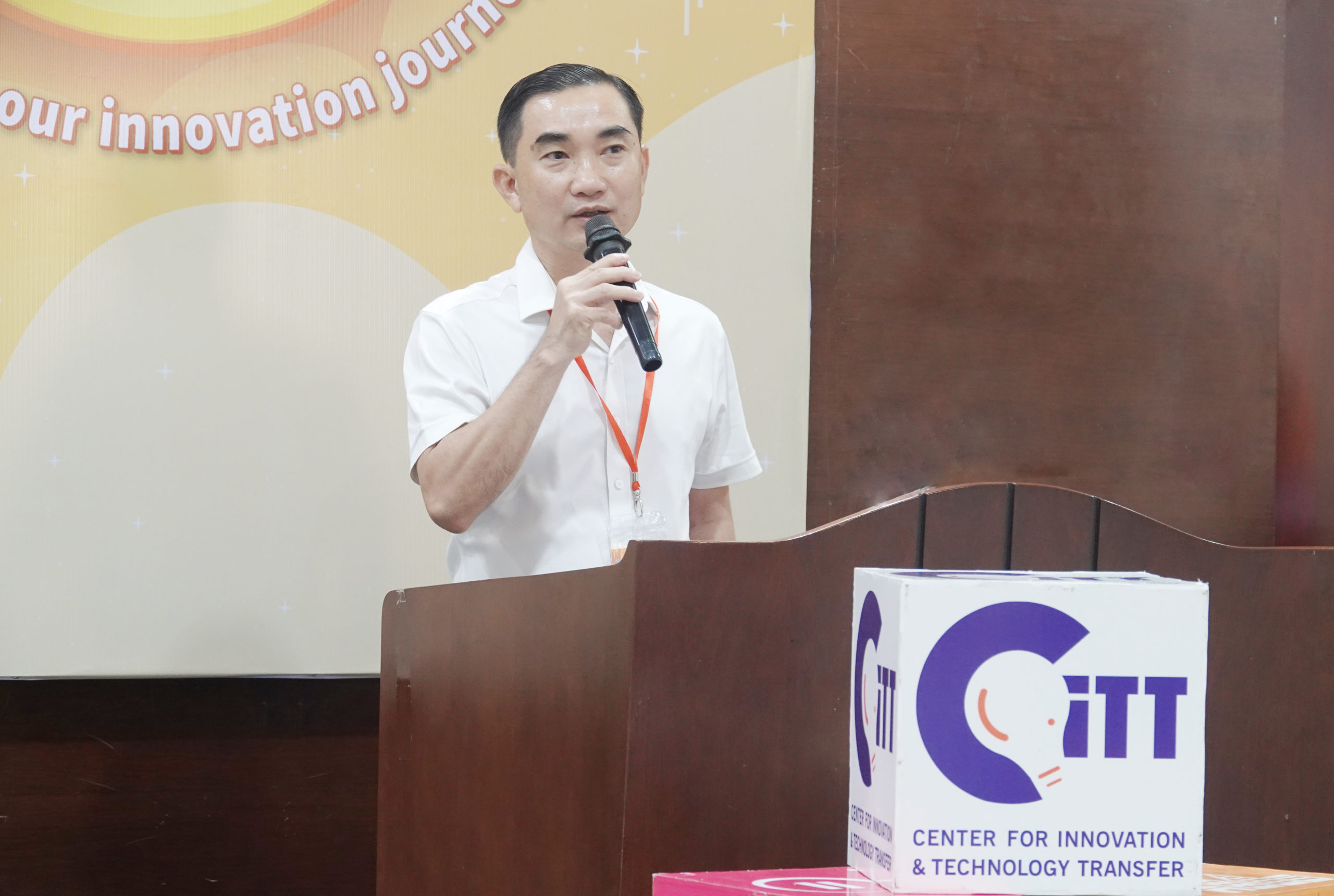 Mr. Quách Anh Sen – Deputy Director in charge of the Saigon Hi-Tech Park Incubation Centre (SHTP-IC) – gave an encouraging message to the students before the presentation and product introduction segment.