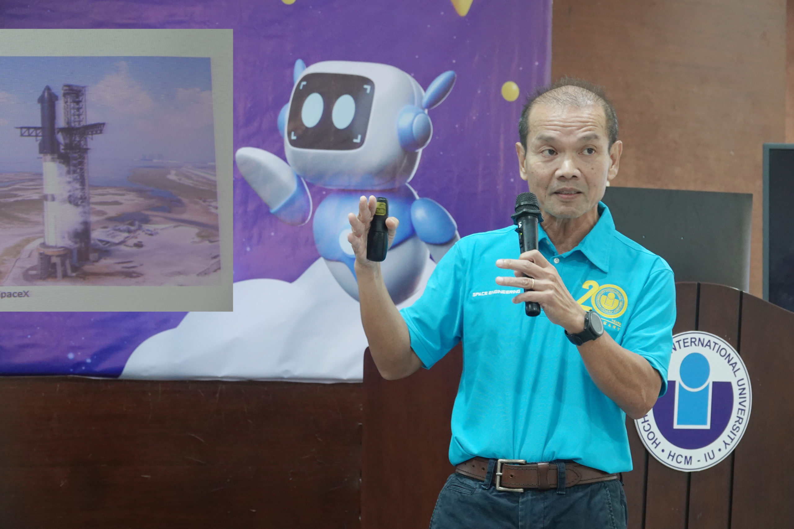 On the morning of October 16, 2024, International University (IU), a member of VNU-HCM, organized a public lecture titled “Advanced Rocket Propulsion Systems and Artificial Intelligence.” The session featured presentations by Professor Bruce Vũ and MSc. Đào Trung Thành. Professor Bruce Vũ, a former aerospace engineer at NASA’s Marshall Space Flight Center and currently a faculty member in the Department of Physics at IU, where provided Aerospace Engineering program, and MSc. Đào Trung Thành, Vice Director of the Academy of Blockchain and Artificual Intelligence Innovation (ABAII), shared their expertise on these critical fields. The lecture aimed to inspire and educate students and participants, fostering the growth of aerospace engineering in Vietnam.