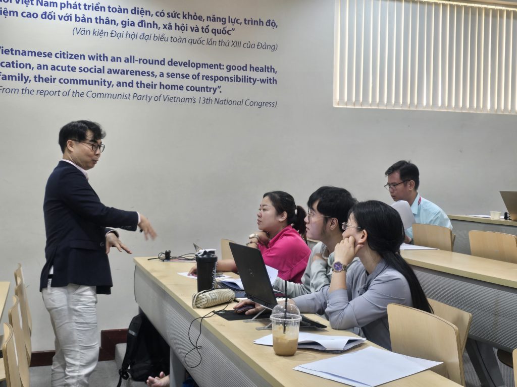 On July 31, 2024, the International University (VNU-HCM) held a training workshop on “Design Thinking” and provided practical guidance on “Designing a Green, Clean, and Sustainable International University” for over 50 staff members. The workshop was led by Mr. Michael Lee – Founder and CEO of CreBiz Factory, a South Korean enterprise.