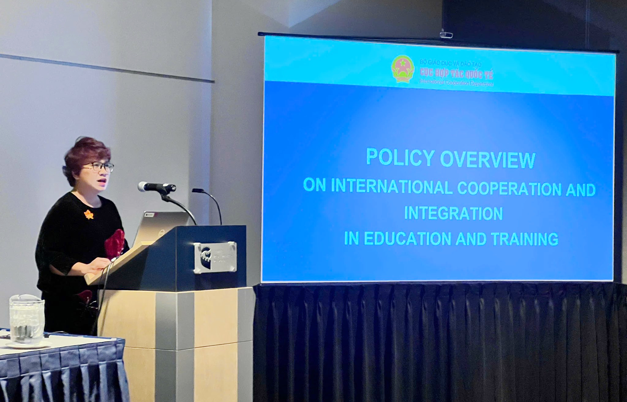 Assoc. Prof. Dr. Nguyễn Thu Thủy – Director General of the Department of International Cooperation, Ministry of Education and Training – Head of the Vietnamese delegation, presenting at the “Country Spotlight Session – Vietnam.