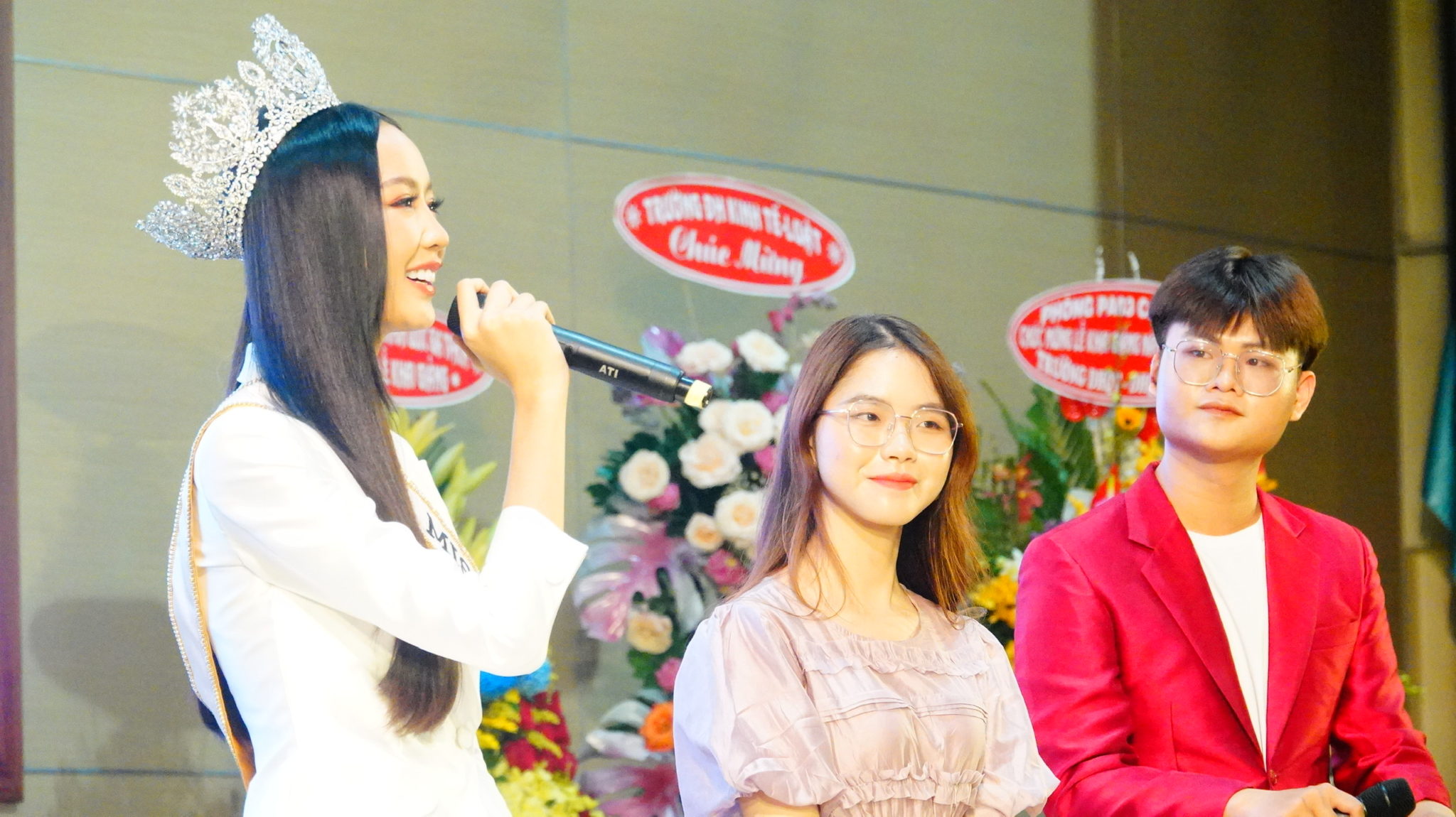 The ceremony came to an end with the sharing from 2 outstanding students, who were known and loved not only by IU students but also peers nationwide. They are Ms. Le Nguyen Bao Ngoc, a K19 BA student, Miss Intercontinental 2022, also Miss World Vietnam 2022 runner-up, and Ms. Nguyen Thi Chau Anh, a K19 BA student, President of IU Union of Students, and the national Students Leader 2022 Champion.