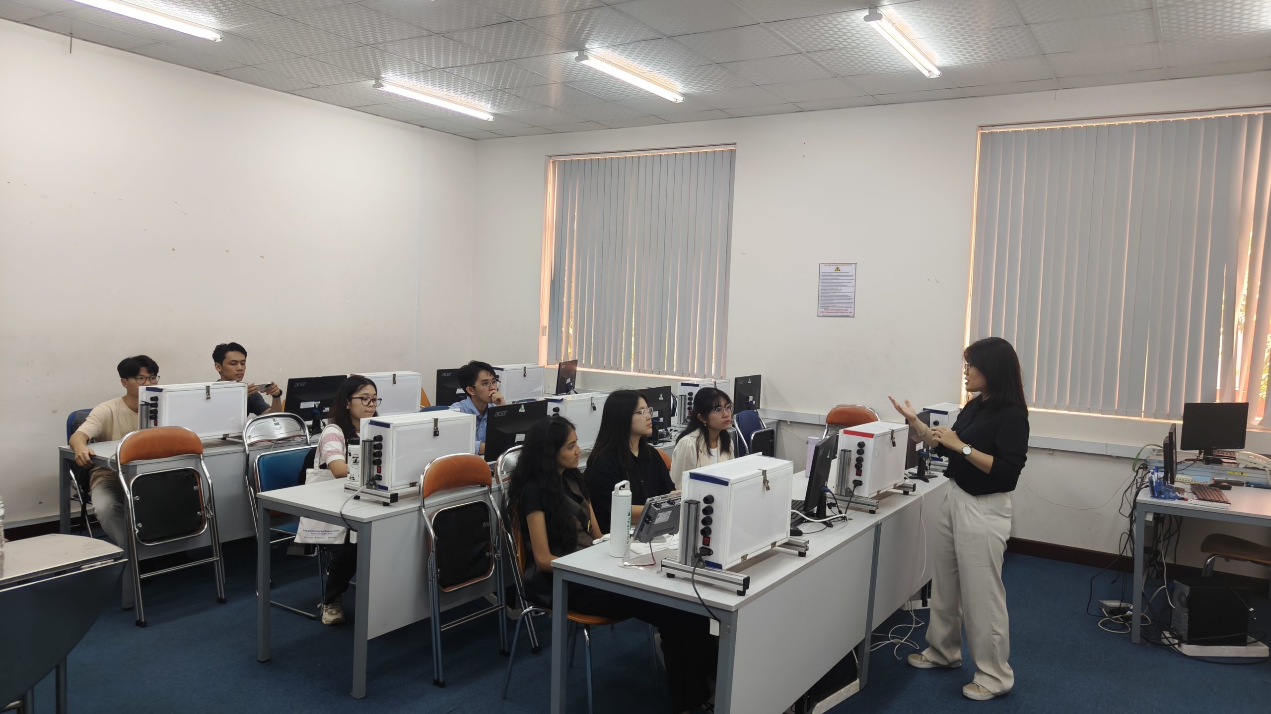 PhD. Nguyen Lap Phuong Uyen – The Laboratory Specialist from the School of Electrical and Electronics Engineering, International University – introduced the delegation to the control system.