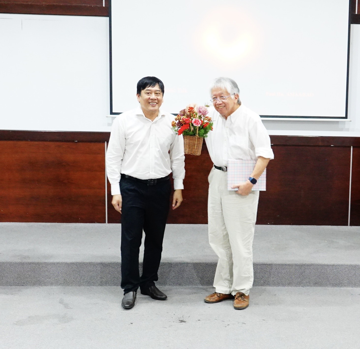 PGS.TS. Trần Tiến Khoa – Hiệu trưởng trường ĐHQT – thay mặt Ban Tổ chức gửi tặng lẵng hoa tươi thắm đến GS. Paul Ho.