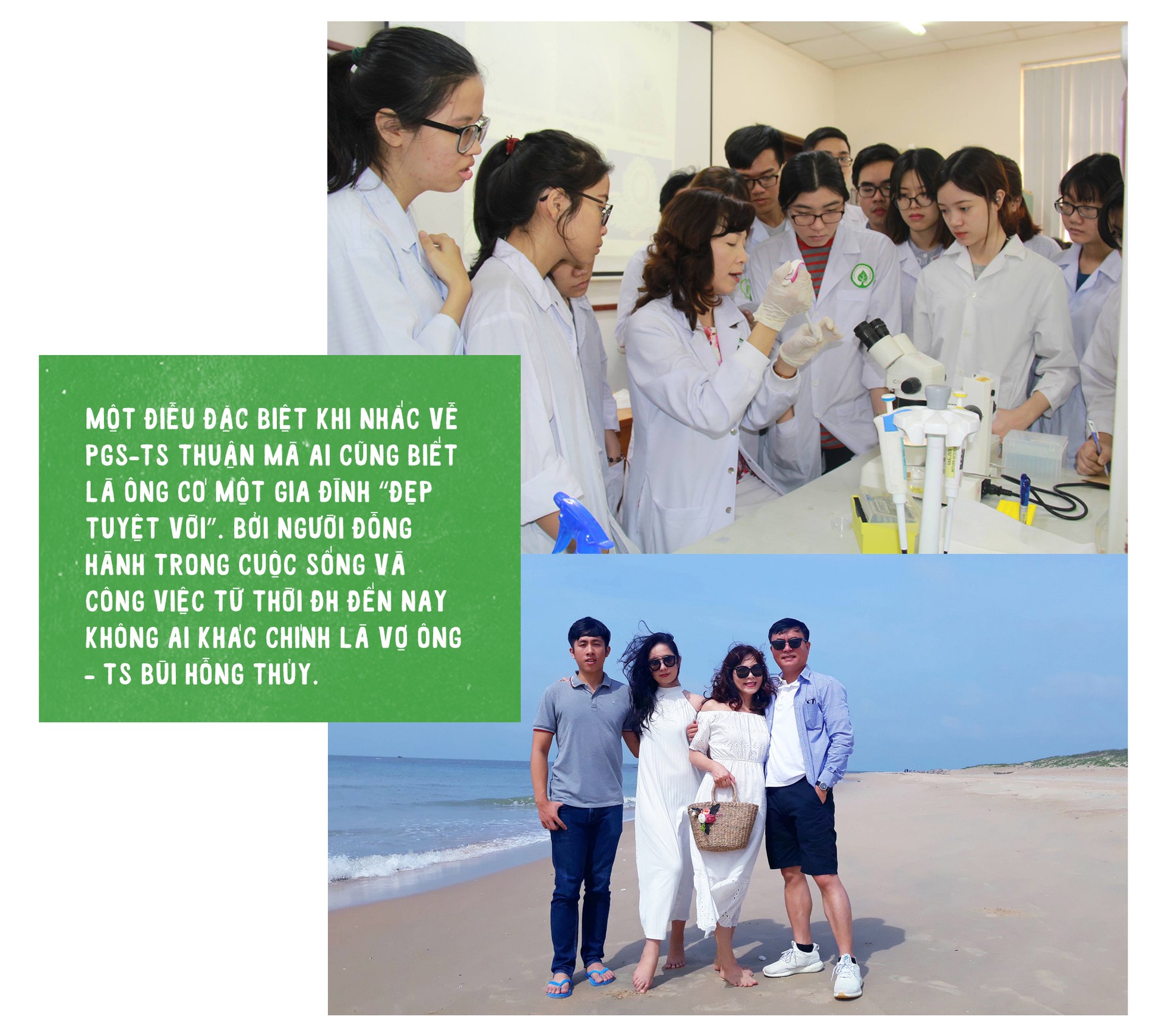 Một điều đặc biệt khi nhắc về PGS-TS Thuận mà ai cũng biết là ông có một gia đình “đẹp tuyệt vời”. Bởi người đồng hành trong cuộc sống và công việc từ thời ĐH đến nay không ai khác chính là vợ ông – TS Bùi Hồng Thủy.