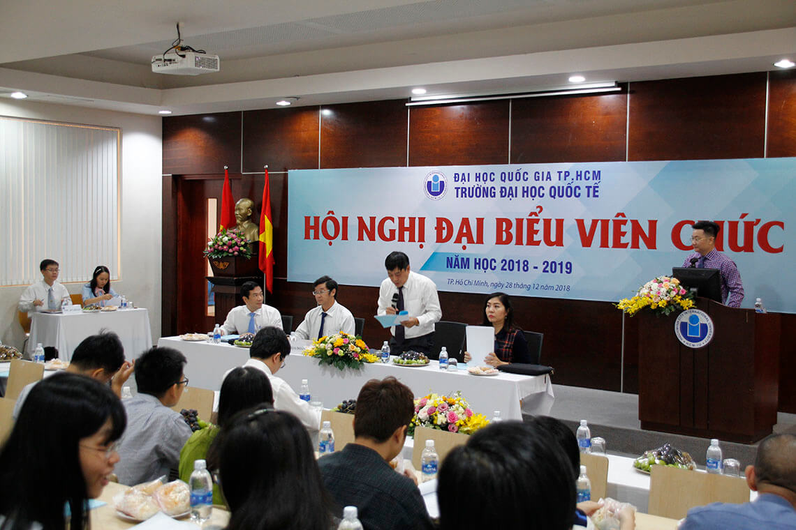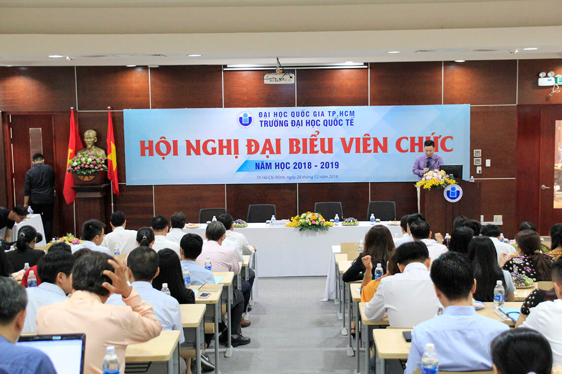 Sáng 28.12.2018, trường Hm88 nhacai cá cược thể thao Quốc Tế (ĐHQG-HCM) đã tổ chức Hội nghị Đại biểu Viên chức năm 2018. Hội nghị đã nghiêm túc đánh giá kết quả thực hiện các nhiệm vụ, làm rõ những hạn chế, yếu kém cũng như đưa ra nguyên nhân, để từ đó xác định phương hướng, nhiệm vụ, giải pháp chủ yếu của các công tác cho năm mới 2019. PGS.TS. Huỳnh Thành Đạt – Giám đốc ĐHQG-HCM – đã đến dự Hội nghị.