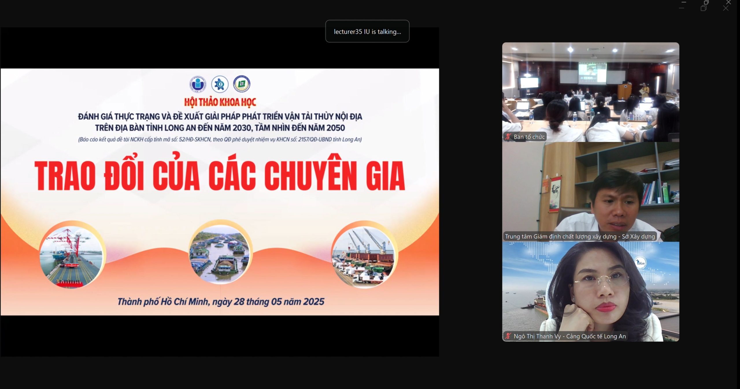Hội thảo không chỉ là dịp để trình bày kết quả, mà còn là cơ hội quý báu để nhóm nghiên cứu tiếp nhận những góp ý thiết thực từ các bên liên quan nhằm hoàn thiện sản phẩm nghiên cứu, đóng góp vào việc xây dựng chiến lược phát triển vận tải thủy nội địa của tỉnh Long An theo hướng hiệu quả, xanh và bền vững, phù hợp với định hướng phát triển quốc gia, đặc biệt là theo tinh thần Nghị quyết số 57-NQ/TW của Bộ Chính trị về phát triển khoa học, công nghệ và đổi mới sáng tạo.