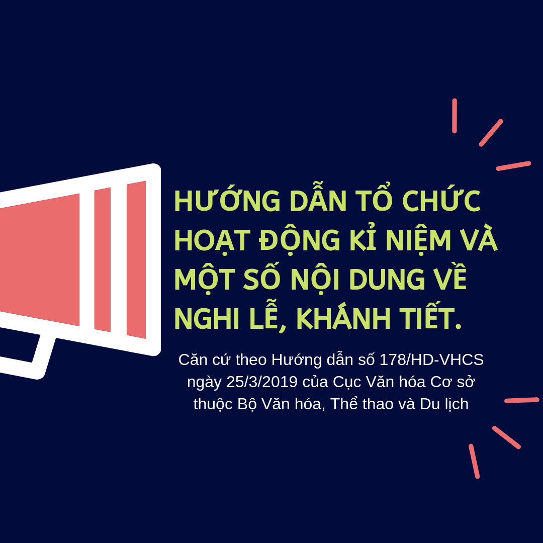 Một số điểm cần lưu ý khi tổ chức hoạt động kỷ niệm, nghi lễ, khánh tiết căn cứ vào Hướng dẫn số 178/HD-VHCS ngày 25/3/2019 của Cục Văn hóa Cơ sở thuộc Bộ Văn hóa, Thể thao và Du lịch