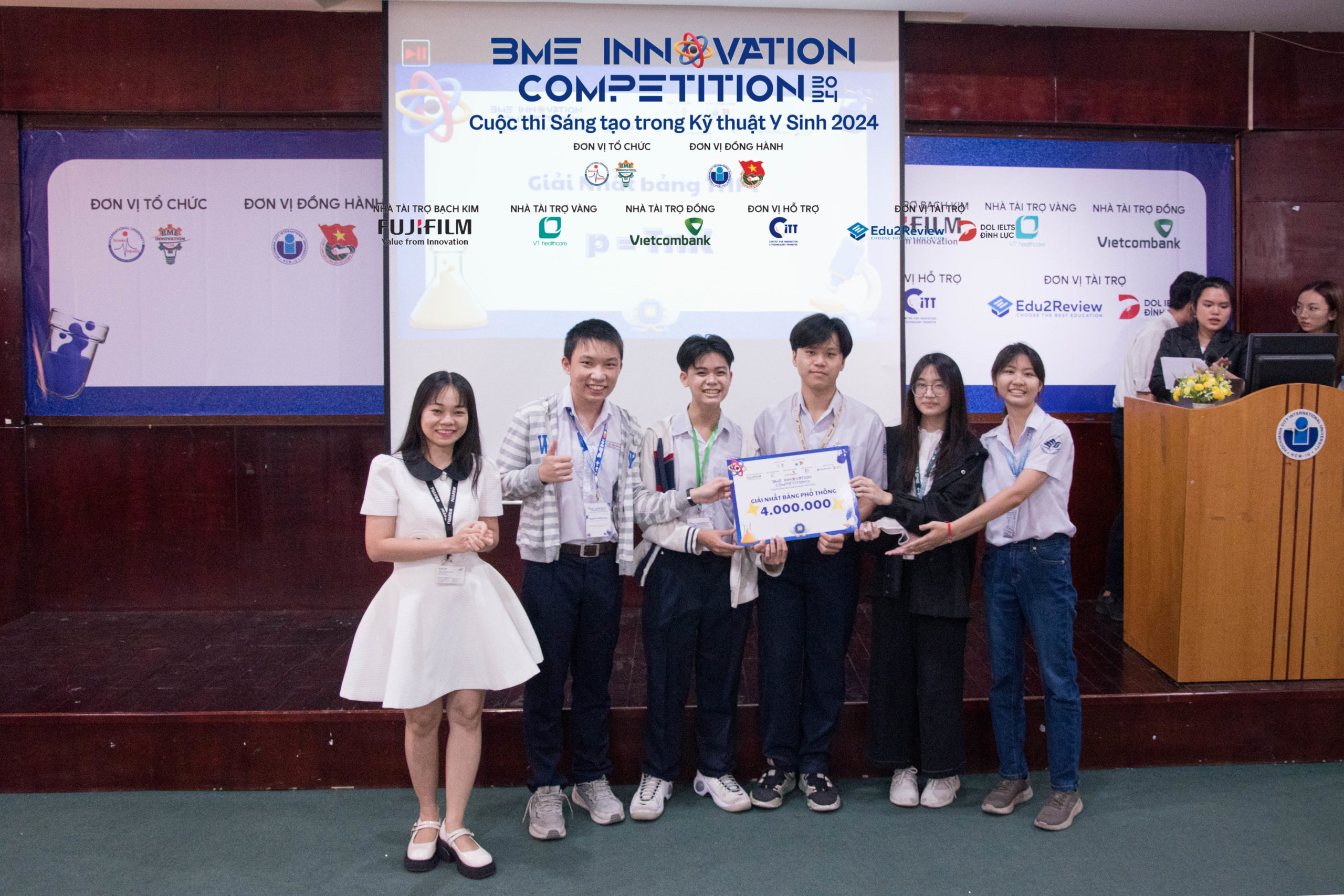 Giải nhất Bảng THPT thuộc về đội p=Tnk với đề tài “NANOHEAR: Artificial Basilar Membrane For Sensorineural Hearing Loss”. Dự án sử dụng vật liệu nano tiên tiến để mô hình hóa các tế bào lông trong ốc tai một cách chính xác. Dự án này nhằm mục đích giải quyết nguyên nhân gốc rễ của tình trạng suy giảm thính lực bằng cách tái tạo các cấu trúc phức tạp cần thiết cho cảm nhận âm thanh. Được sử dụng một cách chính xác, các vật liệu nano bắt chước chức năng tự nhiên của tế bào lông, mang đến một phương pháp đầy hứa hẹn cho việc phục hồi thính giác.