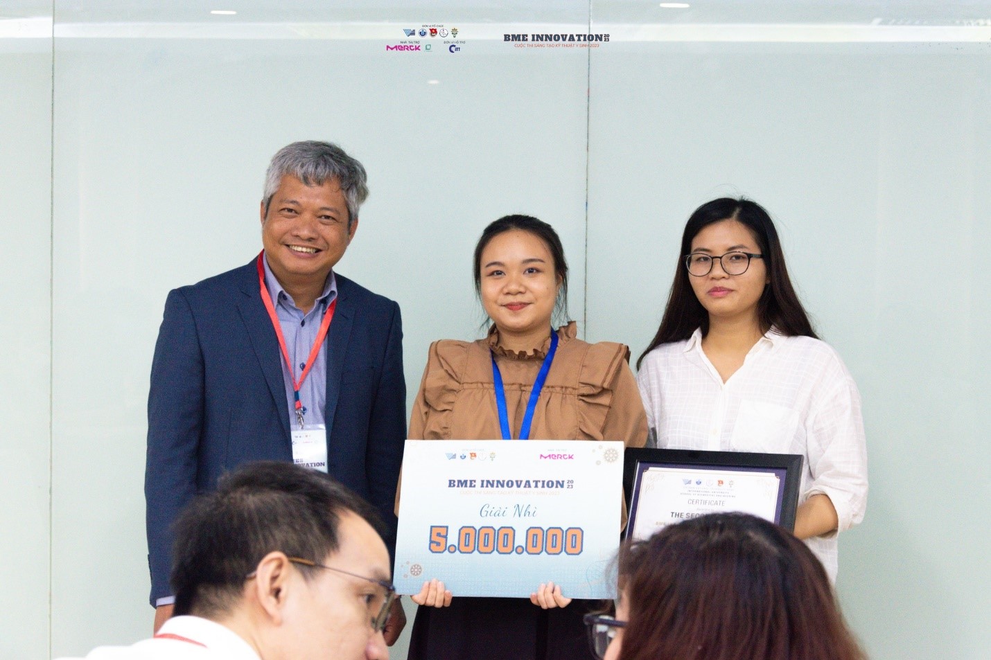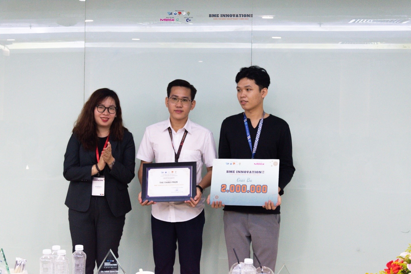 Bà Võ Thị Thùy Mỵ – Đại diện Solution Scientist Merck Việt Nam – trao giải Ba cho đội BMBOT.