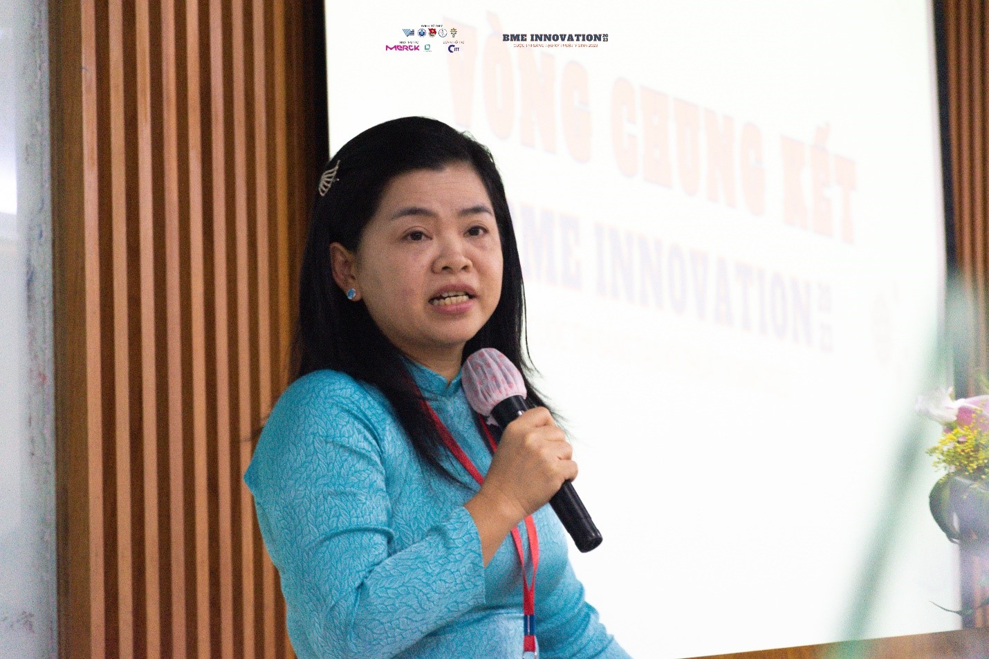 PGS.TS. Nguyễn Thị Hiệp – Trưởng Khoa Kỹ thuật Y Sinh, Trưởng Ban tổ chức BME Innovation Competition 2023 – gửi gắm đôi lời khích lệ đến 16 đội thi và cá nhân.
