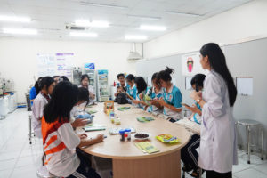 Các bạn học sinh trước khi vào tham dự chương trình đã được đi tham quan hệ thống phòng Lab hiện đại của trường ĐHQT.