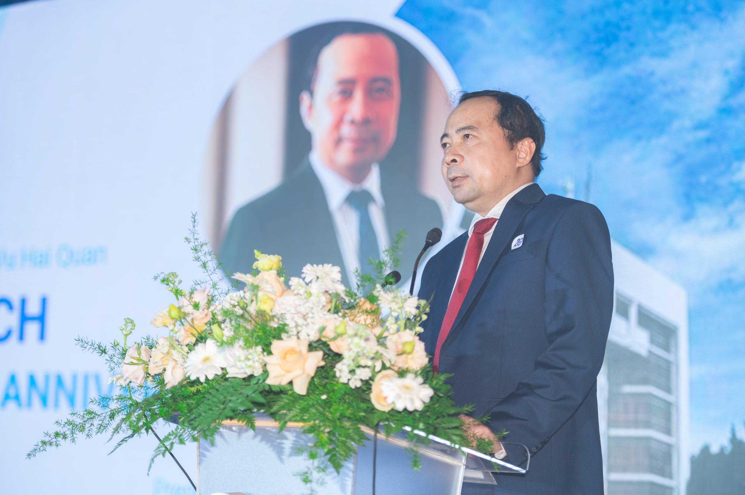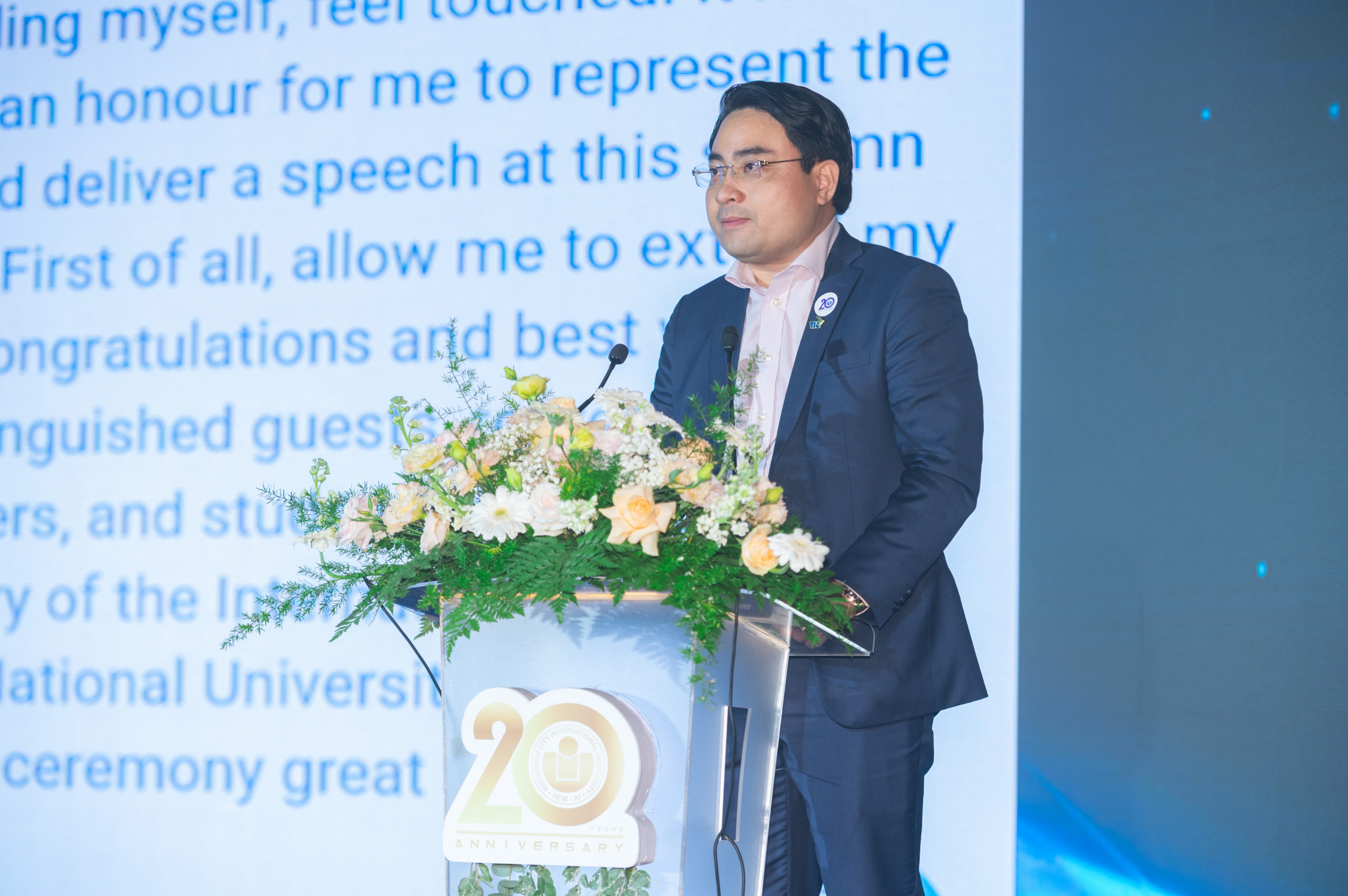 PGS.TS. Đinh Đức Anh Vũ – Phó Hiệu trưởng phụ trách trường ĐHQT – phát biểu chào mừng và tri ân những cá nhân, đối tác đã hết lòng cùng sự phát triển của trường trong 20 năm qua.