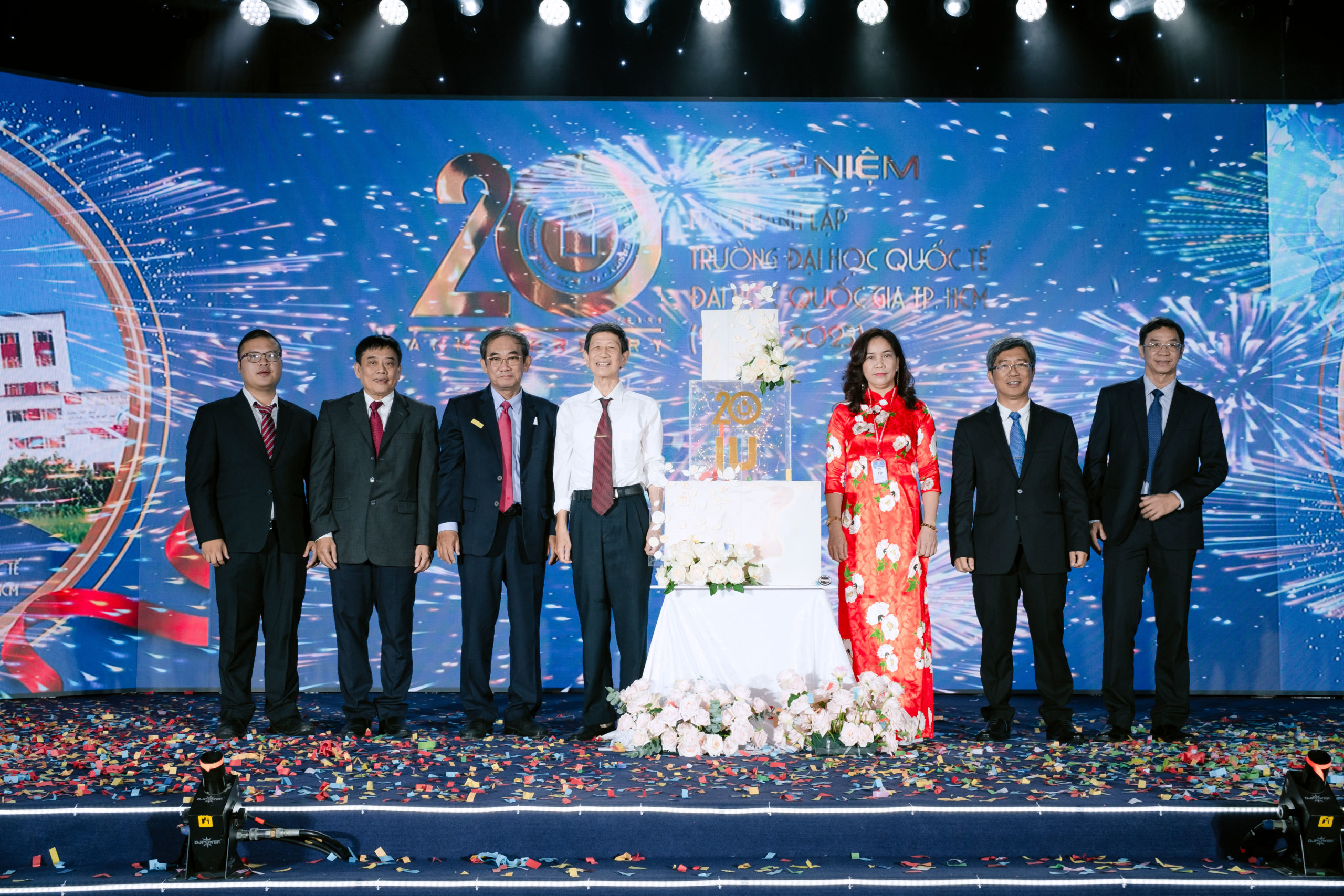 Cuối buổi lễ, đại diện Ban lãnh đạo trường ĐHQT đã tiến hành nghi thức cắt bánh, chính thức đón chào tuổi 20 của trường với nhiều hoài bão, ước mơ vươn ra biển lớn.