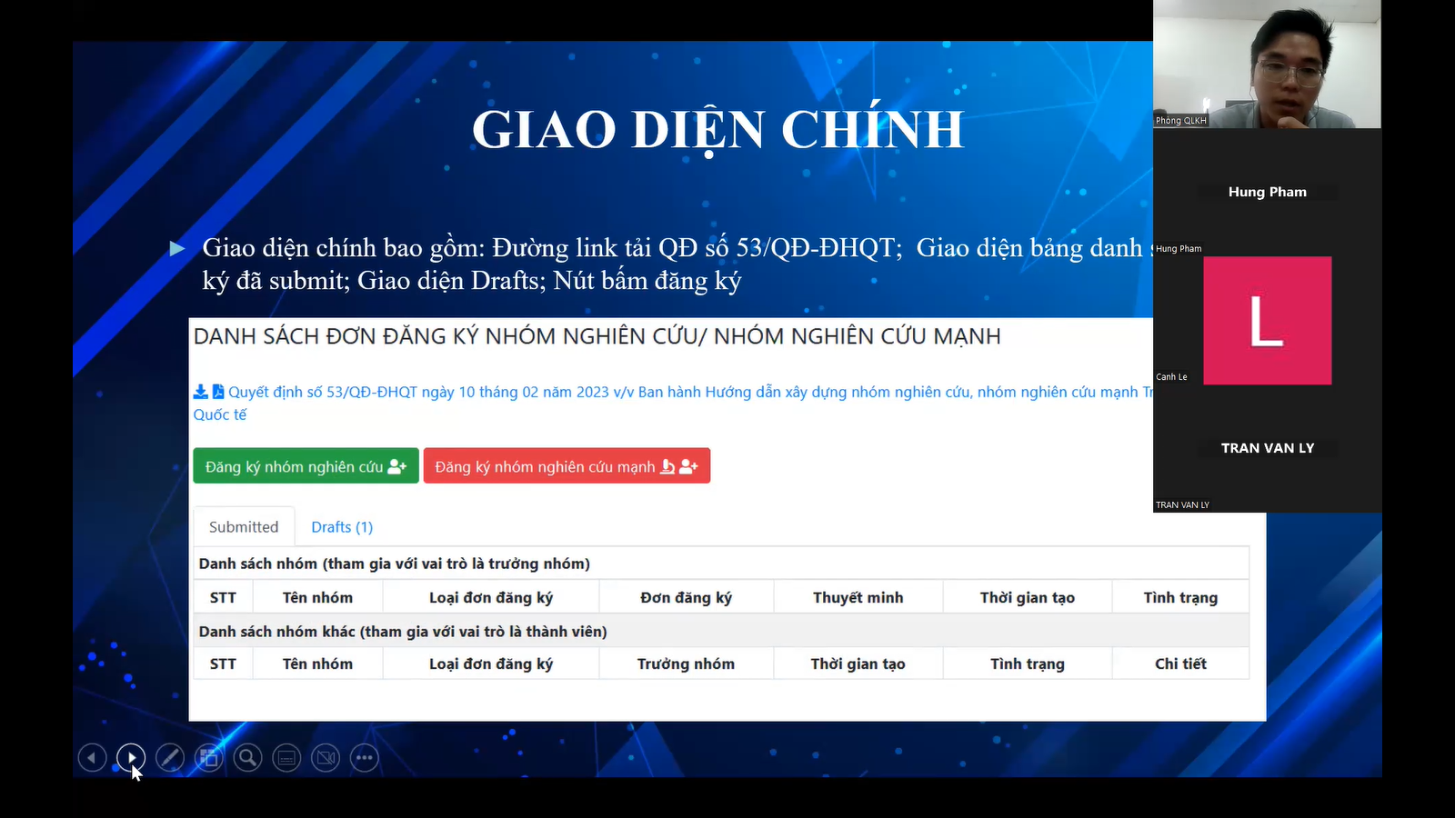 Hm88 nhacai bảo mật an toàn Huỳnh Vĩnh Trường – Chuyên viên Phòng QLKH hướng dẫn sử dụng phần mềm nhóm nghiên cứu/ nhóm nghiên cứu mạnh (tích hợp trong SCIMAN).