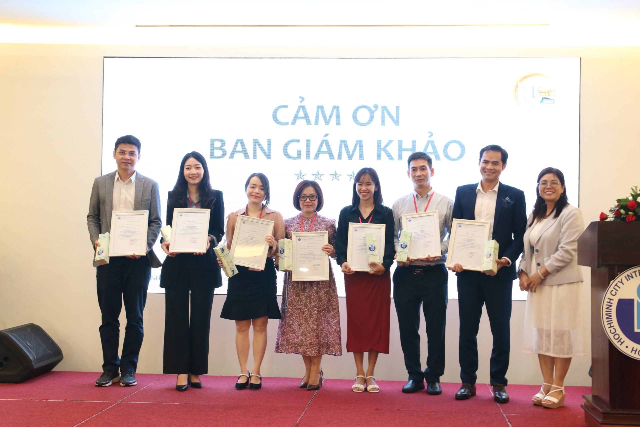 TS. Trần Thị Ngọc Diệp – Trưởng Trung tâm Đổi mới sáng tạo và chuyển giao công nghệ trường ĐHQT, Trưởng Ban Tổ chức cuộc thi – trao thư cám ơn cho Ban Giám khảo cuộc thi IU Start Up Demo Day 2023.