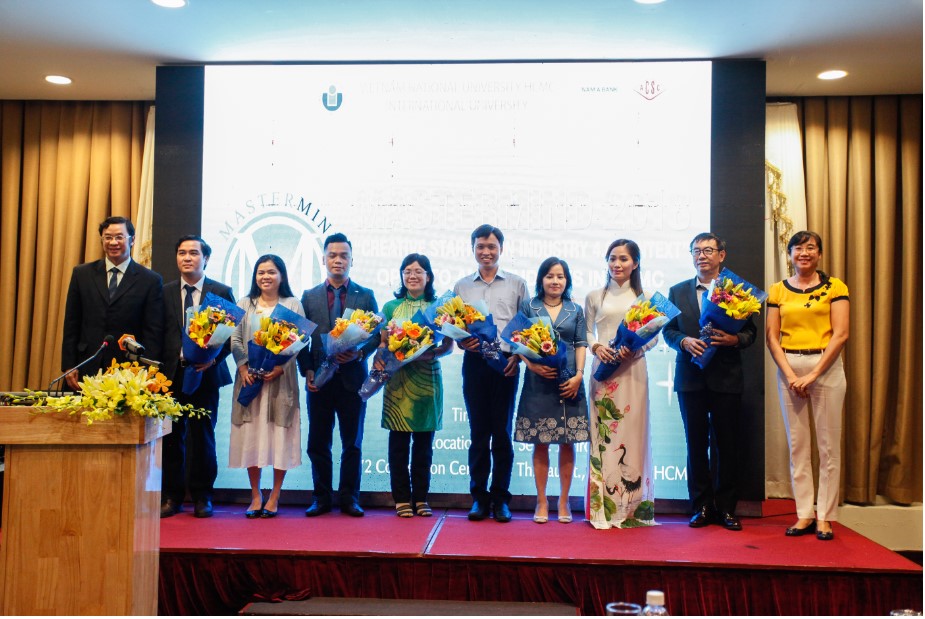 TS. Hồ Nhựt Quang – Phó hiệu trưởng trường ĐHQT – trao hoa tri ân cho thành viên Ban giám khảo cuộc thi