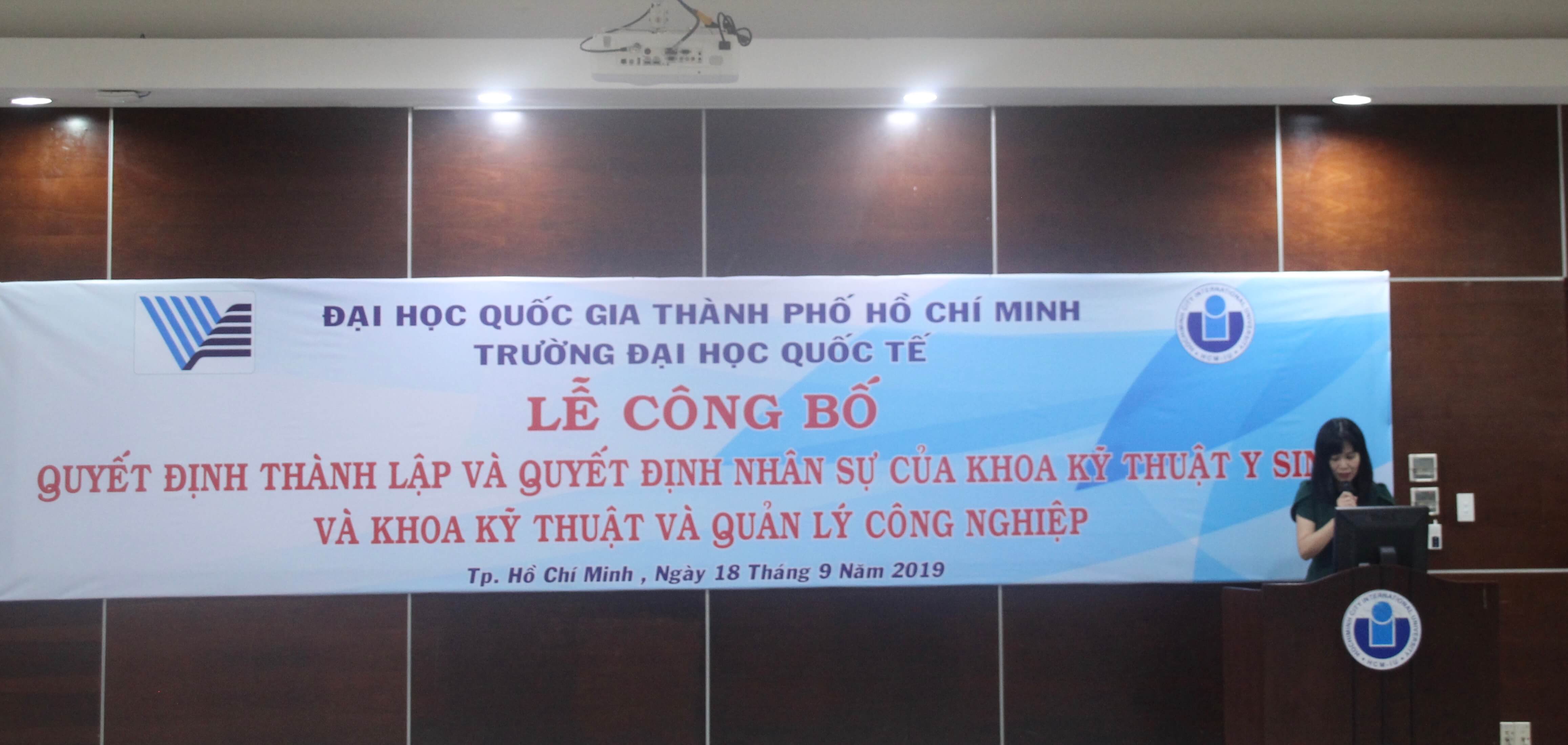ThS. Trần Quỳnh Hoa – Trưởng Phòng Tổ chức Cán bộ – đọc quyết định thành lập 2 khoa mới của trường ĐHQT