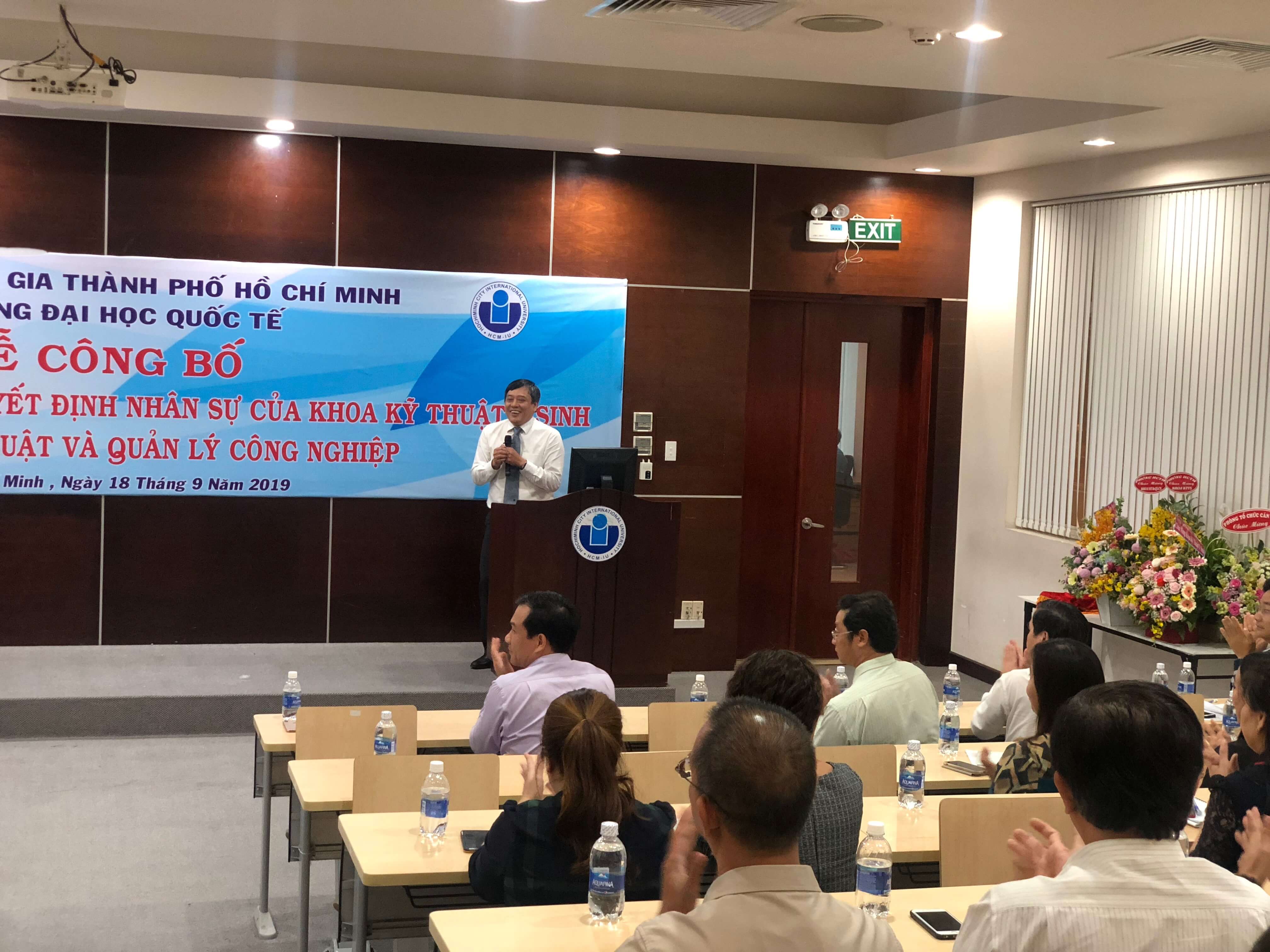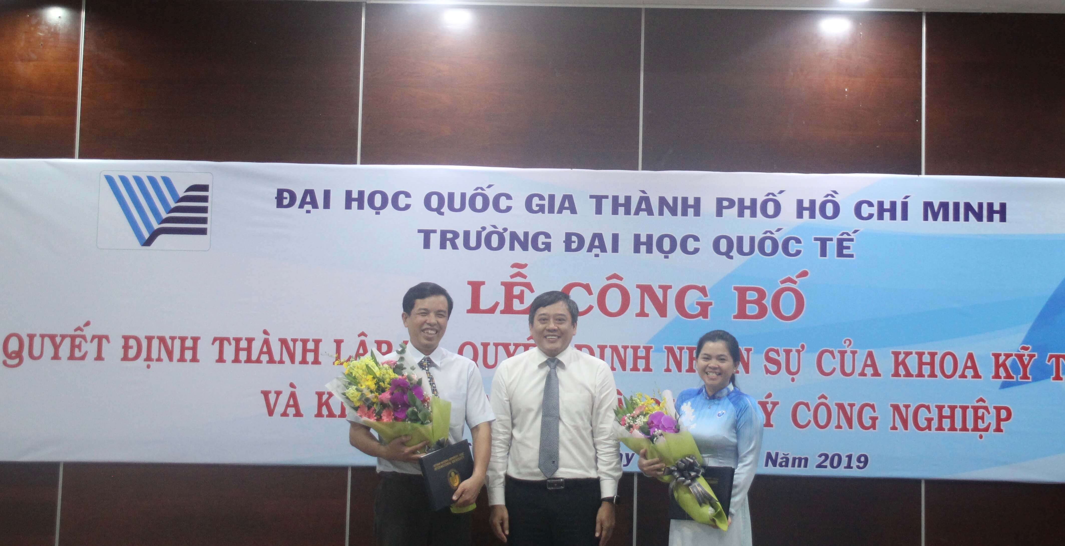 TS. Trần Tiến Khoa – Hiệu trưởng trường Hm88 nhacai cá cược thể thao Quốc Tế – trao hoa chúc mừng và trao quyết định cho lãnh đạo 2 khoa Kỹ thuật Y sinh và Kỹ thuật và Quản lý công nghiệp