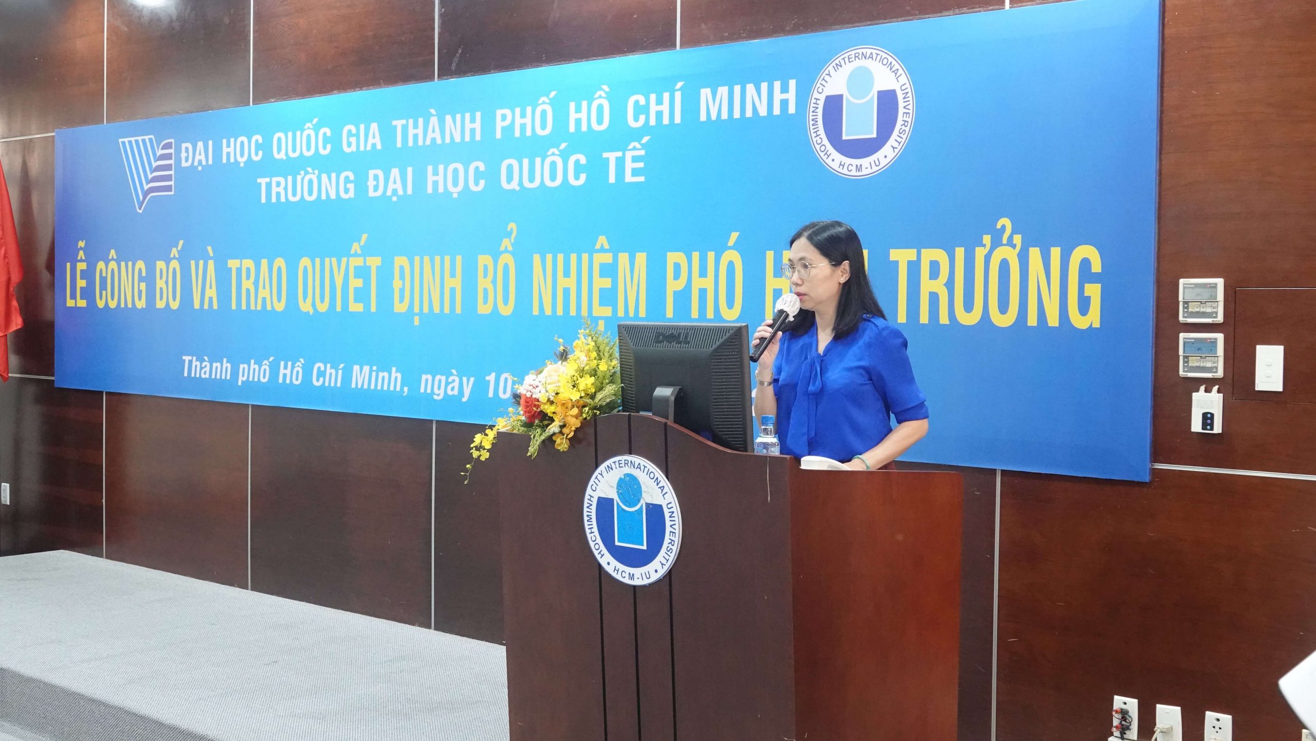 ThS. Lê Thị Anh Trâm – Trưởng Ban Tổ chức Cán bộ ĐHQG-HCM – đọc quyết định bổ nhiệm PGS.TS. Đinh Đức Anh Vũ