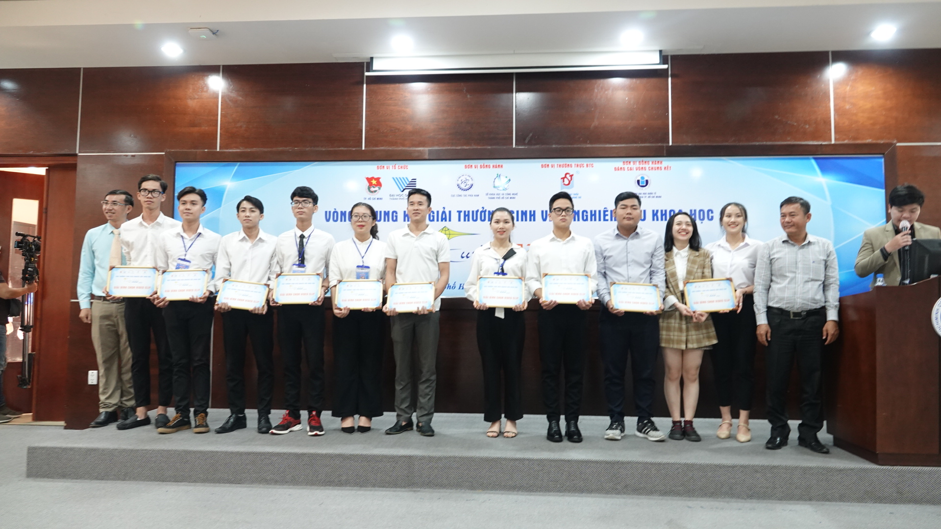 Các thí sinh nhận giải Cuộc thi sáng tạo video clip “Câu chuyện khoa học của tôi” từ Đại diện BTC