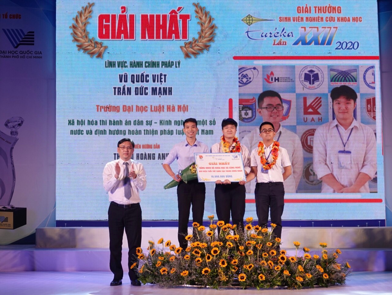 PGS. TS Nguyễn Minh Tâm – Phó Giám đốc ĐHQG-HCM – Trao giải nhất lĩnh vực Hành chính pháp lý cho đội thuộc trường ĐH Luật Hà Nội.
