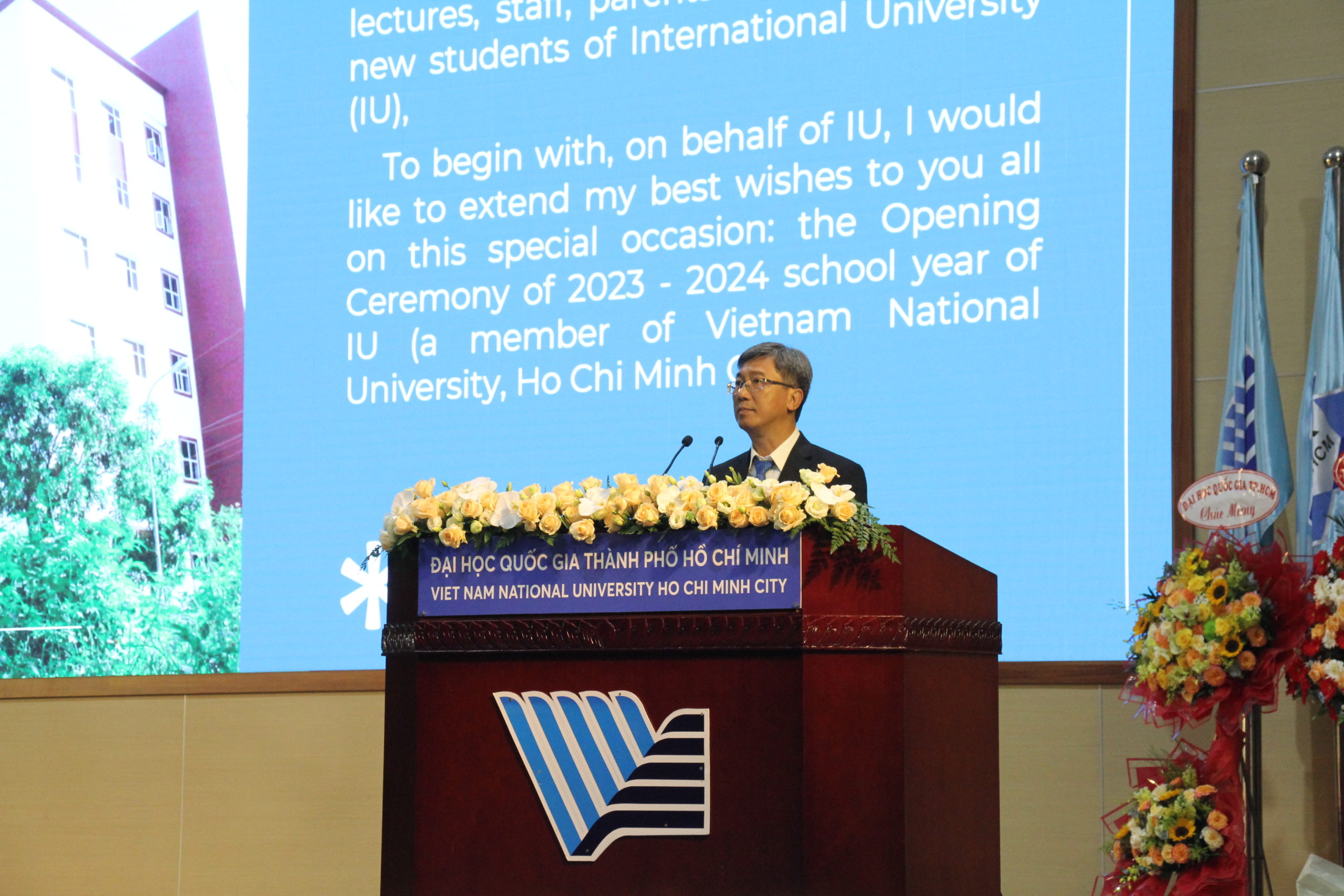 PGS. TS. Đinh Đức Anh Vũ – Phó Hiệu trưởng phụ trách trường ĐHQT- trình bày diễn văn khai mạc.
