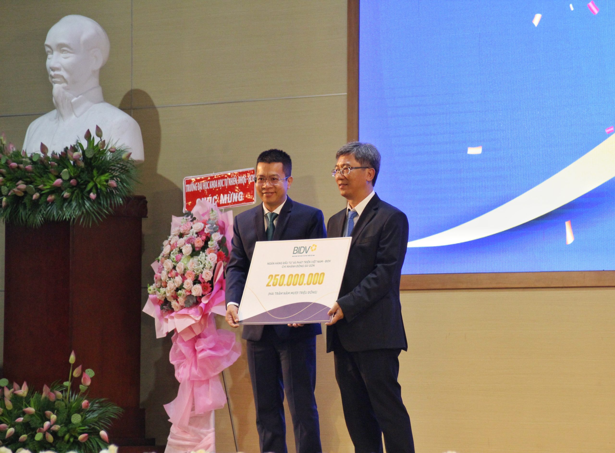 PGS. TS. Đinh Đức Anh Vũ nhận Hm88vip giải trí của bet thủ BIDV do ông Đặng Văn Kiên – Giám đốc Ngân hàng Đầu tư và Phát triển Việt Nam – BIDV, Chi nhánh Đông Sài Gòn – trao tặng các em tân Hm88 link đăng nhập.