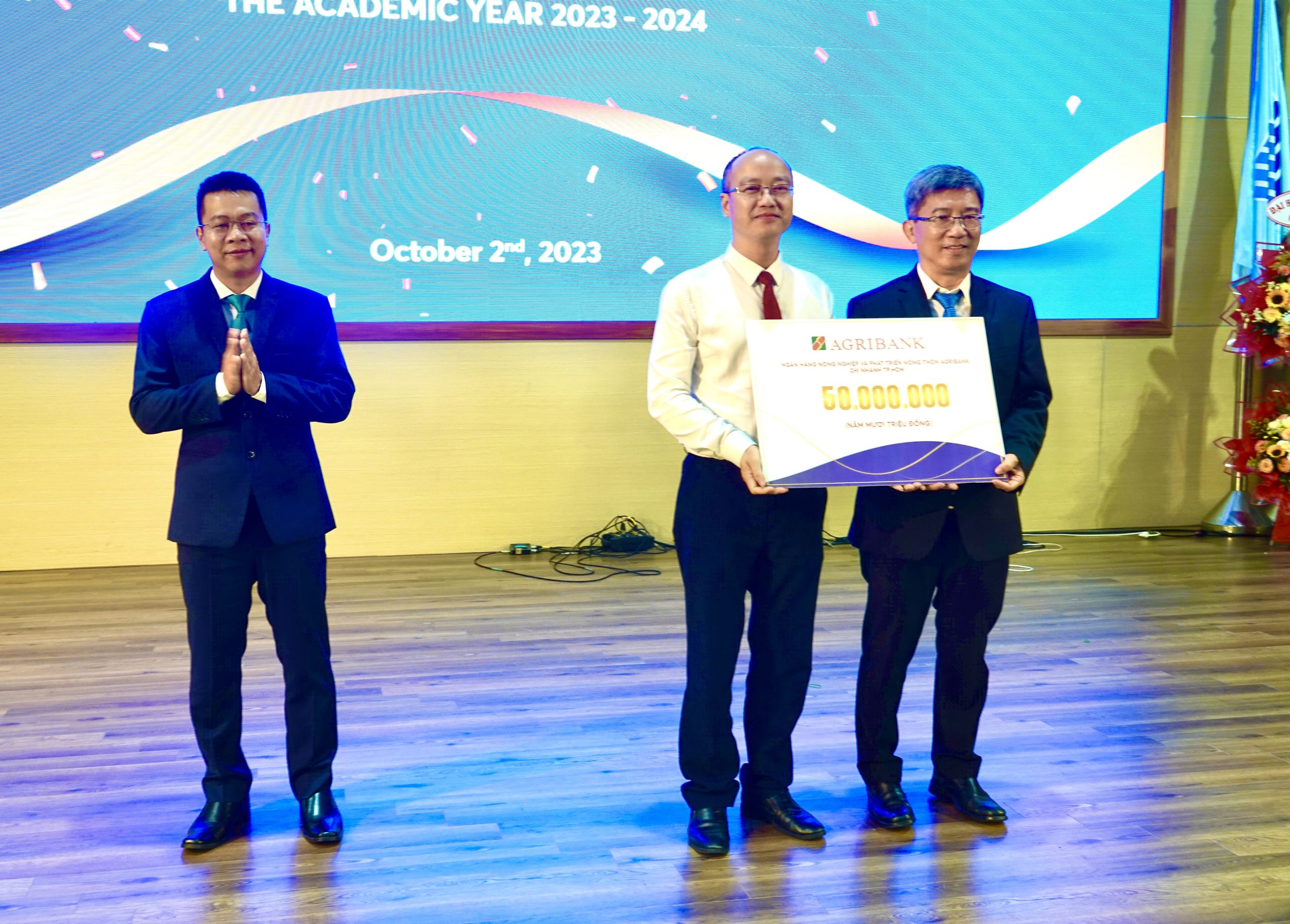 PGS. TS. Đinh Đức Anh Vũ nhận Hm88vip giải trí của bet thủ từ ngân hàng Agribank do ông Hồ Viết Đông Lâm – Phó Giám đốc, Ngân hàng Nông nghiệp và Phát triển Nông thôn Agribank, Chi nhánh TP. HCM – trao tặng các em tân Hm88 link đăng nhập.