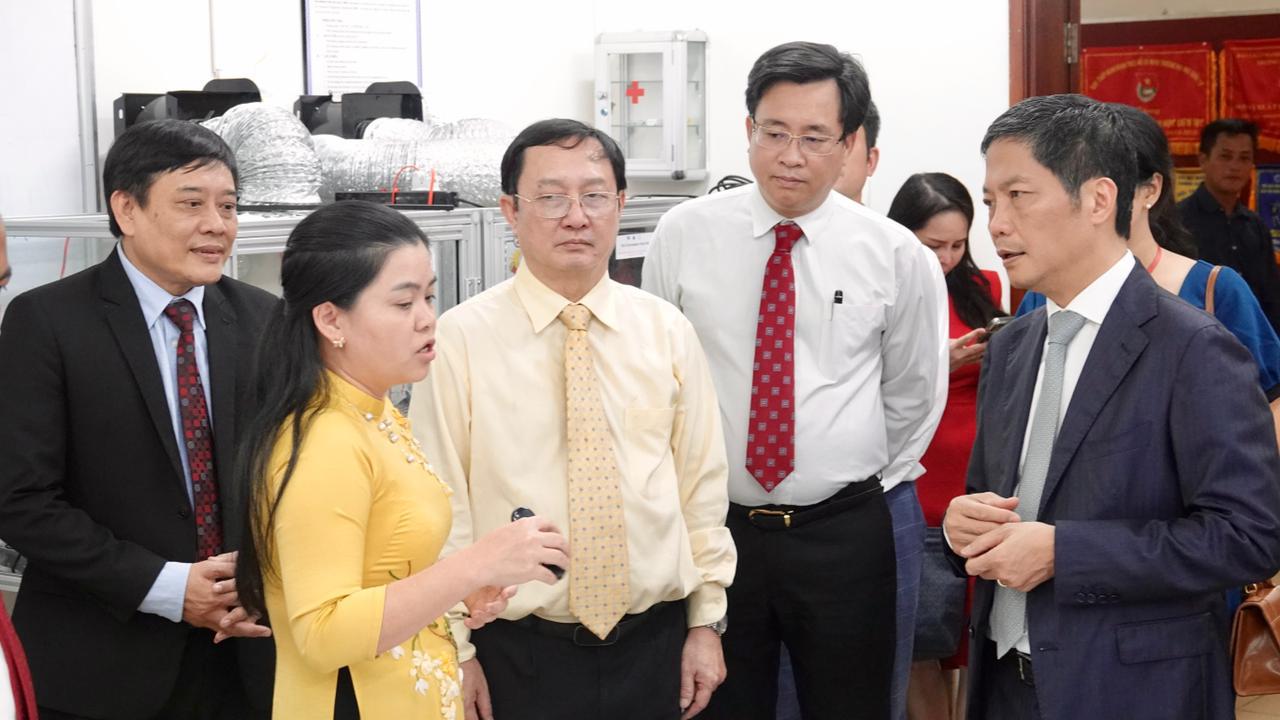 Đoàn khách quý còn có sự tham dự của PGS.TS. Vũ Hải Quân – Giám đốc ĐHQG-HCM. PGS.TS. Trần Tiến Khoa – Hiệu trưởng trường ĐHQT – đón đoàn đến thăm và đưa đoàn đến một số phòng thí nghiệm trọng điểm của nhà trường.