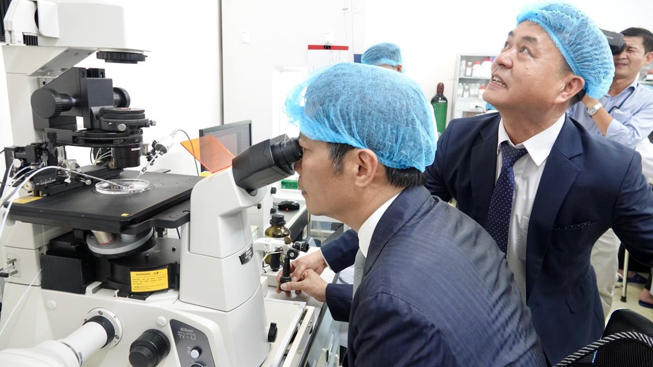 Đ/c Trần Tuấn Anh và Đ/c Huỳnh Thành Đạt đã tham quan Cellular Reprogramming Lab – nơi đang hực hiện các công nghệ tái biệt hóa tế bào, thụ tinh kính hiển vi, và công nghệ chẫn đoán phôi sớm (PGD). Đặc biệt Đ/c Trần Tuấn Anh đã được PGS.TS. Nguyễn Văn Thuận hướng dẫn và tận tay thực hiện kỹ thuật lấy nhiễm sắc thể từ trứng, đồng thời rất hào hứng khi thảo luận về công nghệ myStem cell sau PGD.