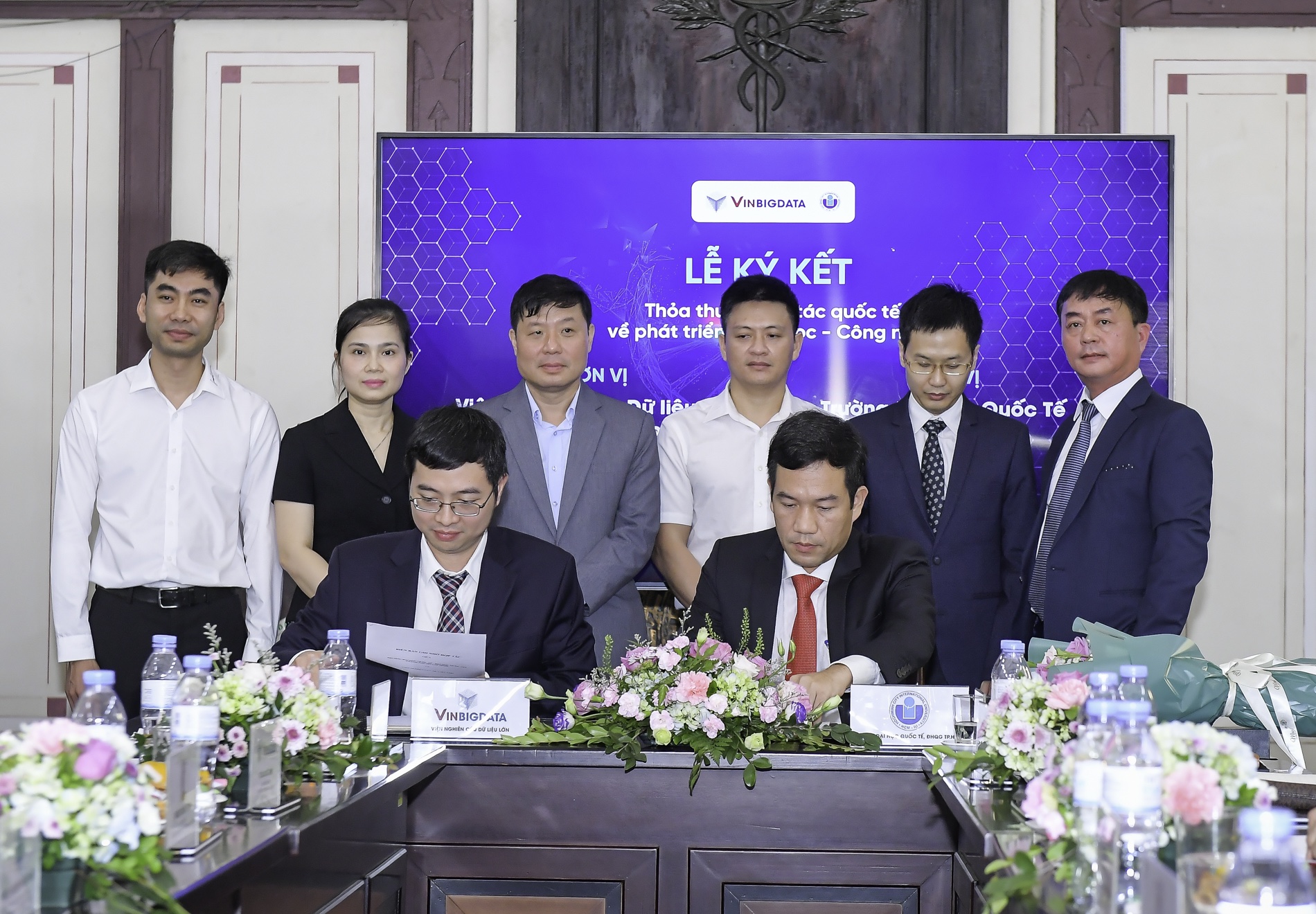 Biên bản ký kết hợp tác được ký bởi PGS.TS. Lê Văn Cảnh – Phó Hiệu trưởng trường ĐHQT – và TS. Đào Đức Minh – Giám đốc điều hành viện VinBDI