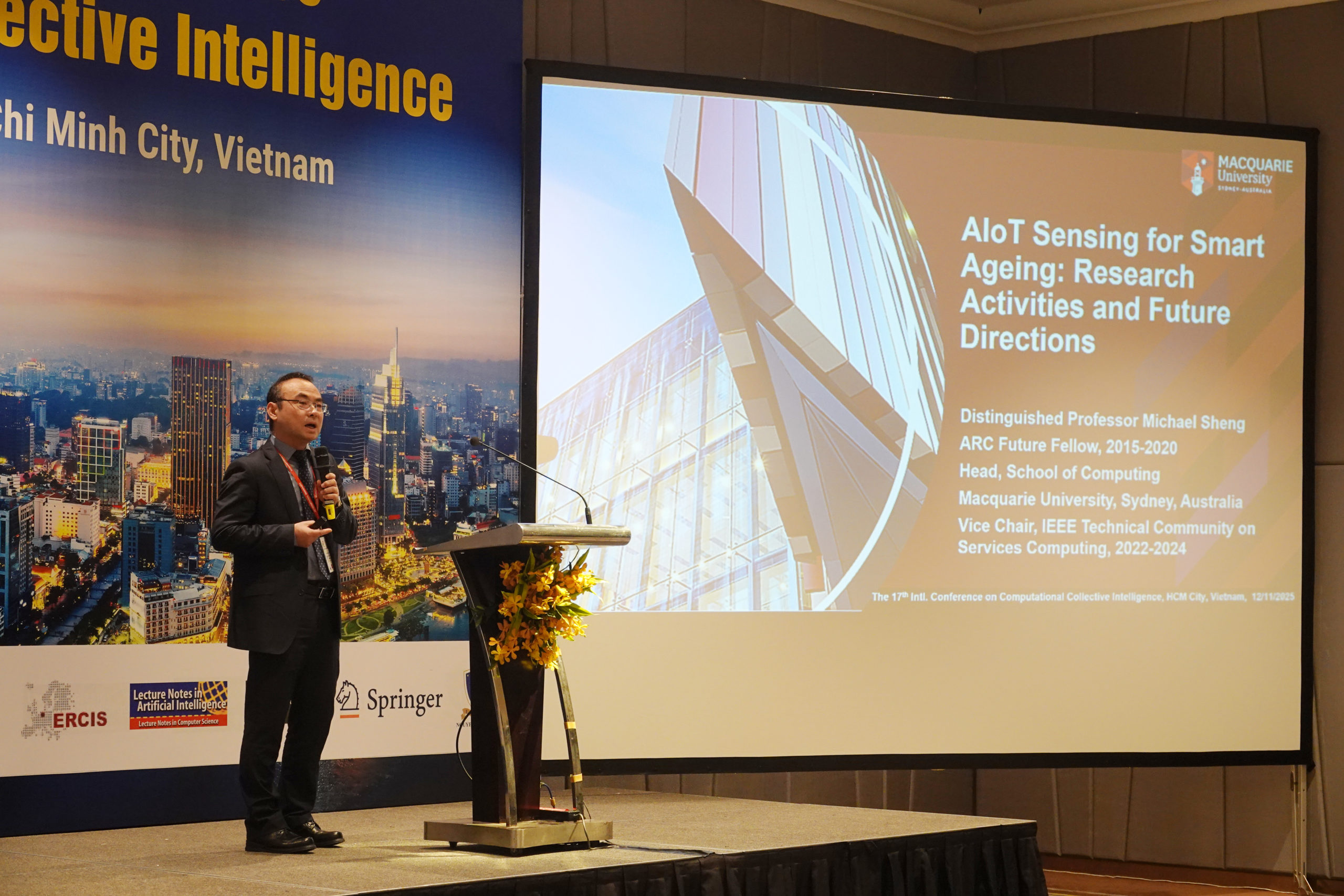 GS. Michael Sheng – Trưởng Khoa Khoa học Máy tính, Hm88 nhacai cá cược thể thao Macquarie (Úc) – giới thiệu các nghiên cứu 10 năm gần đây về ứng dụng AI và IoT trong chăm sóc sức khỏe người cao tuổi, hướng tới phát triển thành phố thông minh và nâng cao chất lượng sống.