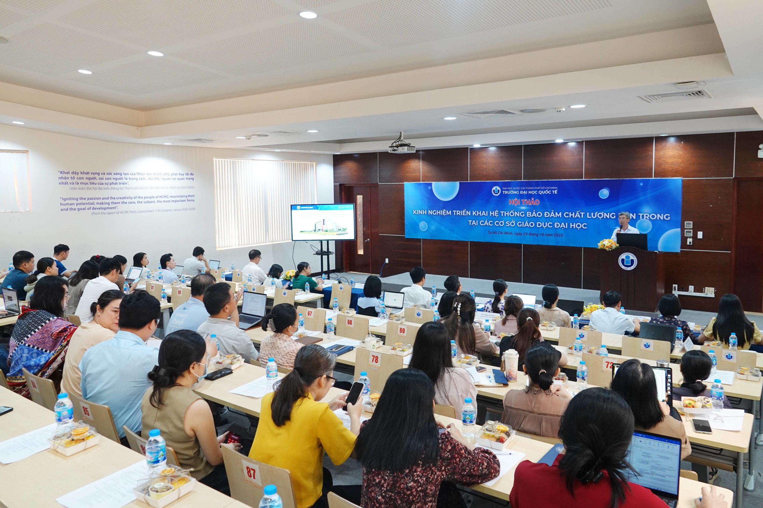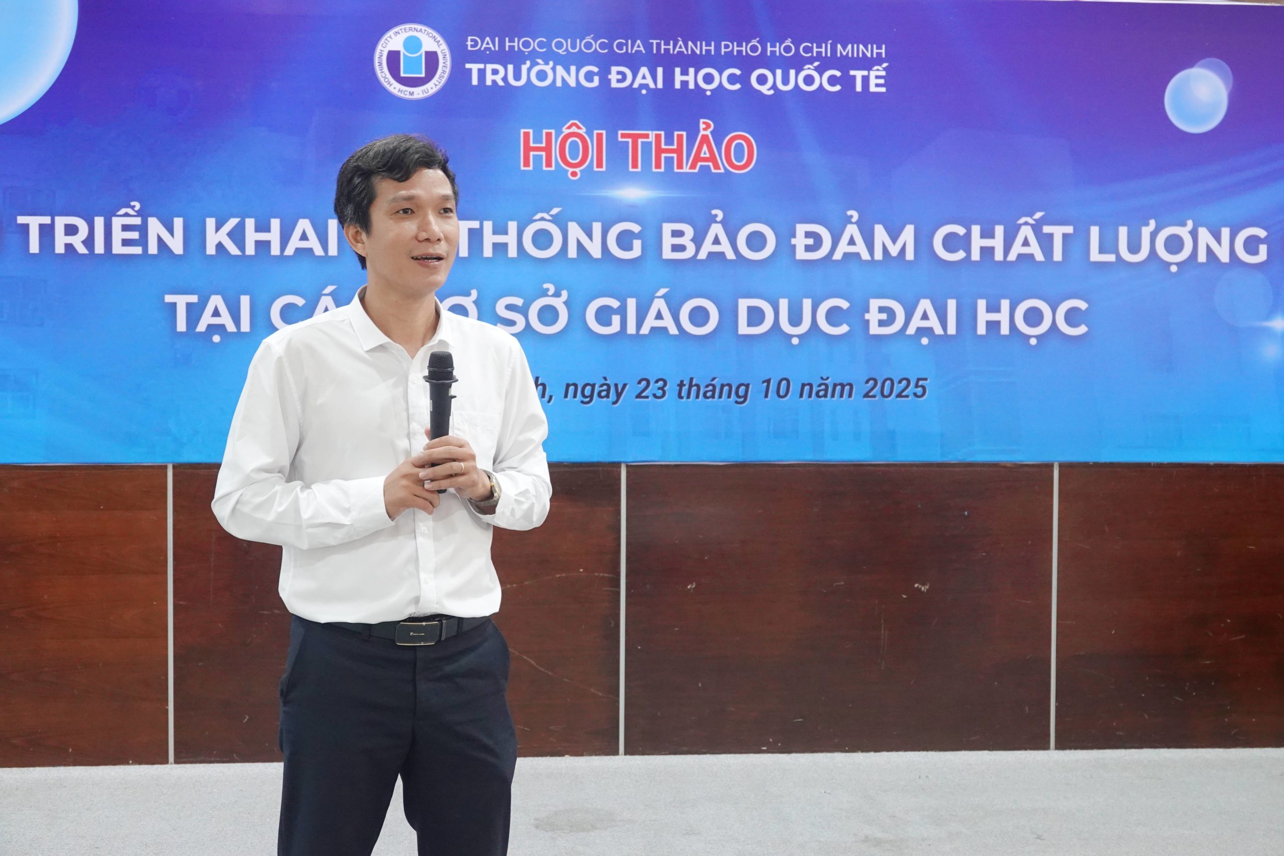 Phát biểu khai mạc, PGS.TS. Đinh Đức Anh Vũ – Phó Hiệu trưởng trường ĐHQT – nhấn mạnh tầm quan trọng của việc xây dựng hệ thống bảo đảm chất lượng bên trong (Internal Quality Assurance – IQA). Công tác bảo đảm chất lượng là nền tảng cốt lõi cho sự phát triển bền vững, góp phần nâng cao chất lượng đào tạo, nghiên cứu, phục vụ cộng đồng và hội nhập quốc tế.
