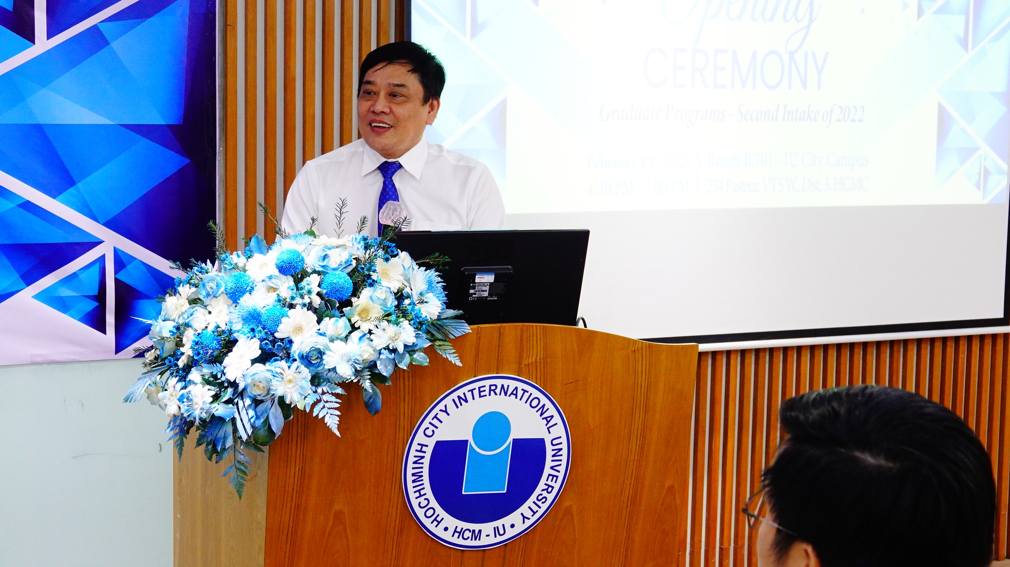 Tiếp tục buổi lễ, PGS. TS Lê Đình Minh Trí – Trưởng phòng Đào tạo Sau Hm88 nhacai cá cược thể thao – chia sẻ một số thông tin quan trọng trong chương trình đào tạo như thời gian đào tạo, thời gian gia hạn đào tạo tối đa, các kiểm định mà Trường nhận được, chuẩn đầu ra tiếng Anh, v.v.
