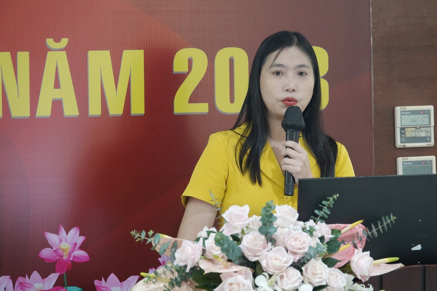 ThS. Nguyễn Thị Thu Thảo – Trưởng Ban Ban Thanh tra Nhân dân báo cáo công tác của Ban trong năm học 2022 – 2023 và phương hướng hoạt động Ban Thanh tra Nhân dân năm học 2023 – 2024 tại Hội nghị.